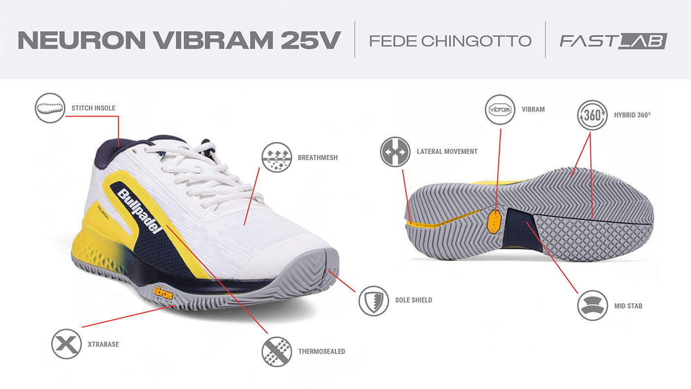 Será el modelo concebido para Fede Chingotto. Tanto su nueva suela VIBRAM como el diseño del corte, están centrados en potenciar la ligereza y el juego vivo de Fede. El mesh técnico de la zapatilla nos aporta la transpiración para el juego, así como la ligereza ya mencionada. Prácticamente sin costuras, se ensambla con termosellados para hacer la zapatilla aun más confortable.