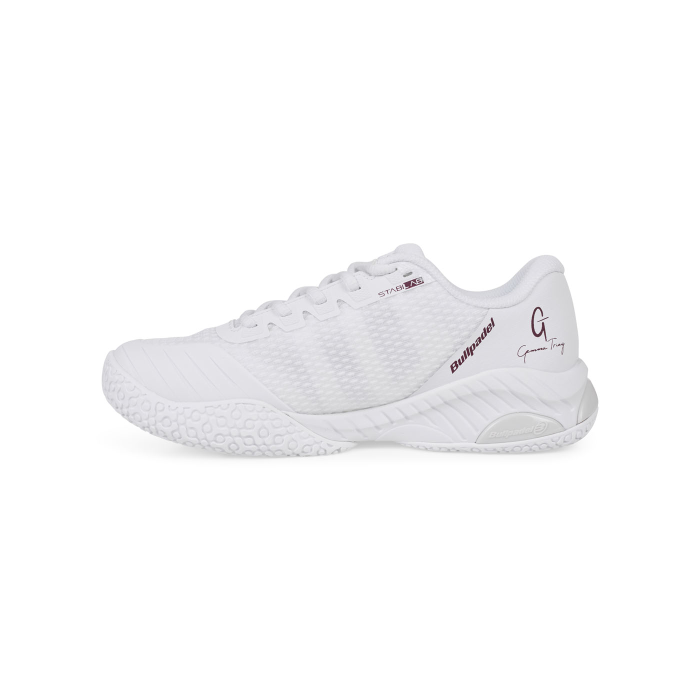 Es la zapatilla de nuestra jugadora Bea González. La nueva suela desarrollada en colaboración con VIBRAM favorecerá los movimientos más rápidos, ligera pero igual de resistente. Su combinación de materiales tipo Jacquard y rejilla ensamblados con termosellados sin costuras, garantizan la transpiración necesaria para el juego más exigente. Cuenta con una protección inyectada en la puntera que nos protegerá de los roces con la pista. Por otro lado la estabilidad está garantizada gracias al soporte del talón en el corte y anti torsión, en medio de la suela.