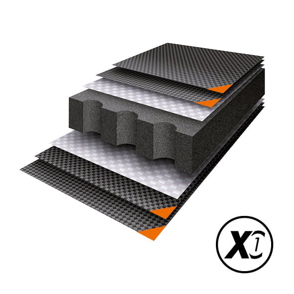 Su núcleo externo se compone de fibra híbrida Fibrix, su núcleo interno estácompuesto por la nueva MultiEva que consta de 2 densidades de eva diferentes y su marco CarbonTube de fibra de carbono 100%. Además, dispone del nuevo corazón Vertex.