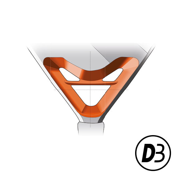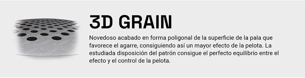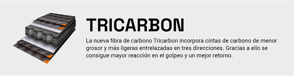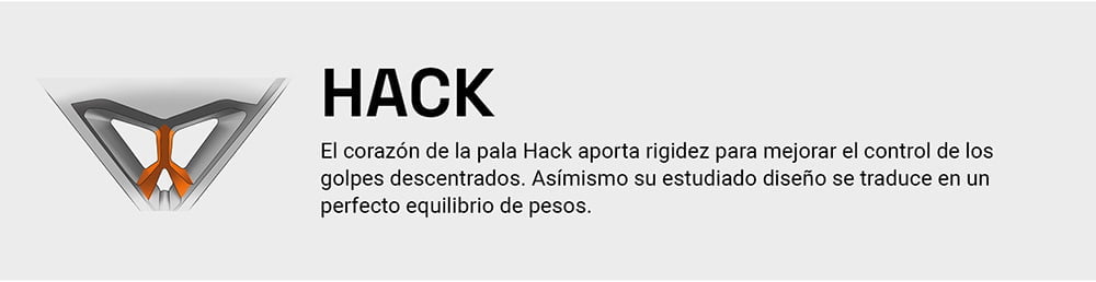 TRICORE: en esta nueva versión de la HACK 04 sufre un restyle frente a su antecesora. En sus vectores, se ha incrementado el tamaño con el objetivo de aumentar la estabilidad y reducir las vibraciones no deseadas mejorando la respuesta de la pala en cada golpe haciendo de esta nueva versión una pala más estable.