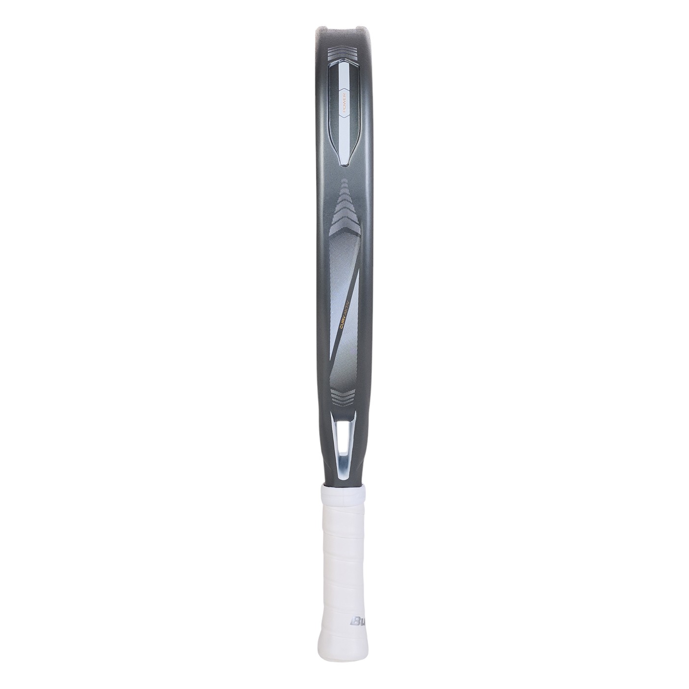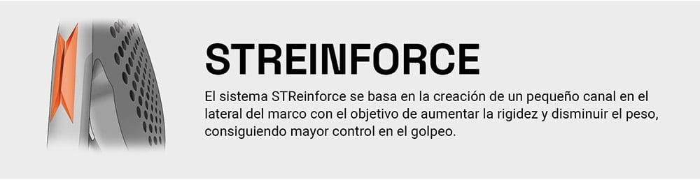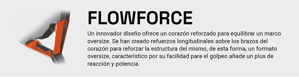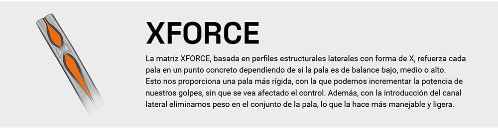 GEOSHAPE : introducimos el concepto de potencia explosiva, con un marco geométrico.La clave radica en la capacidad de maximizar la fuerza generada por el movimiento del jugador, a través del balance de la pala, y la distribución del peso a lo largo del eje central de la misma situandolo en una posición superior, llevando el peso hacia el extremo de la cabeza. El balance alto, aumenta el momento de inercia de la raqueta, lo que se traduce en una mayor facilidad para la generación de palanca.