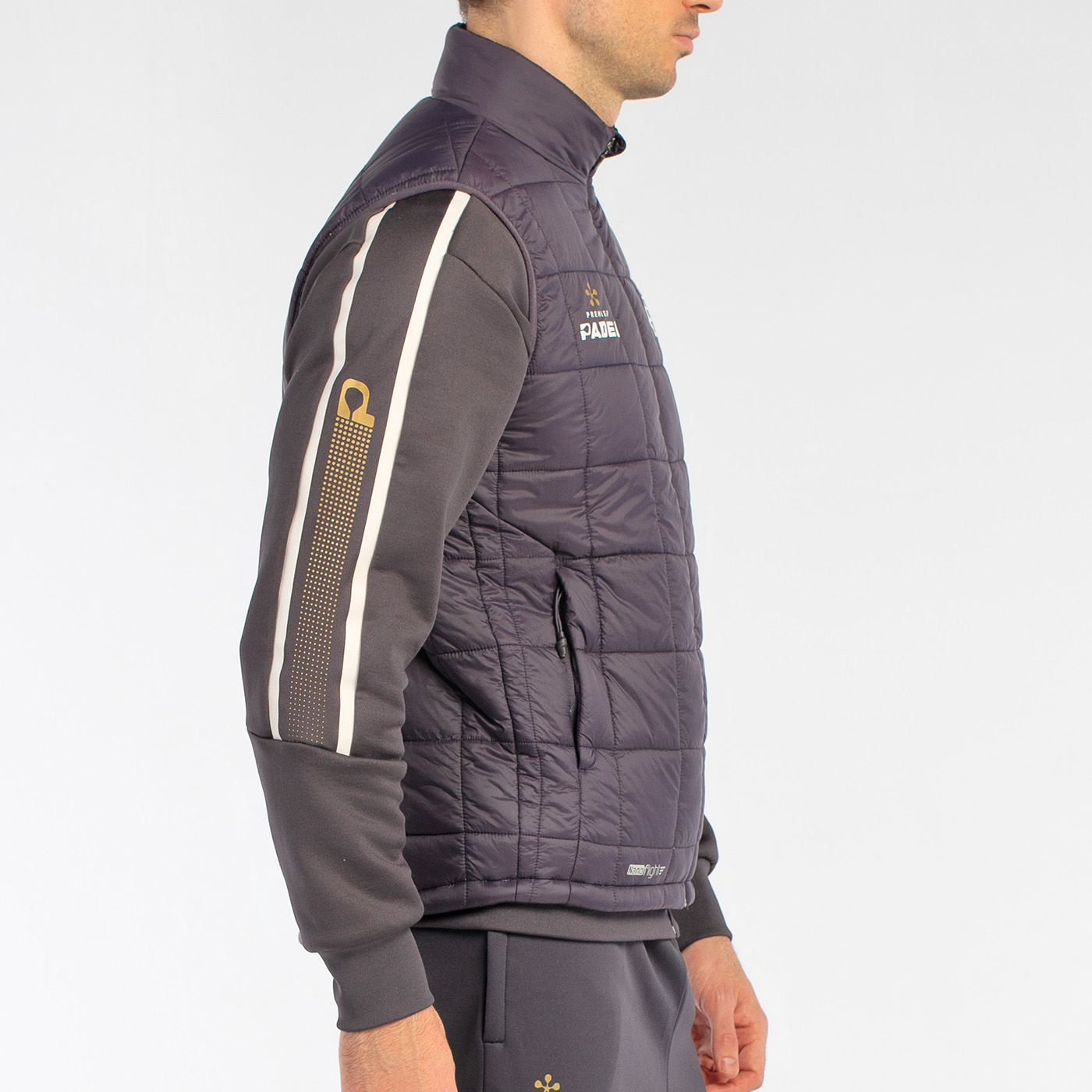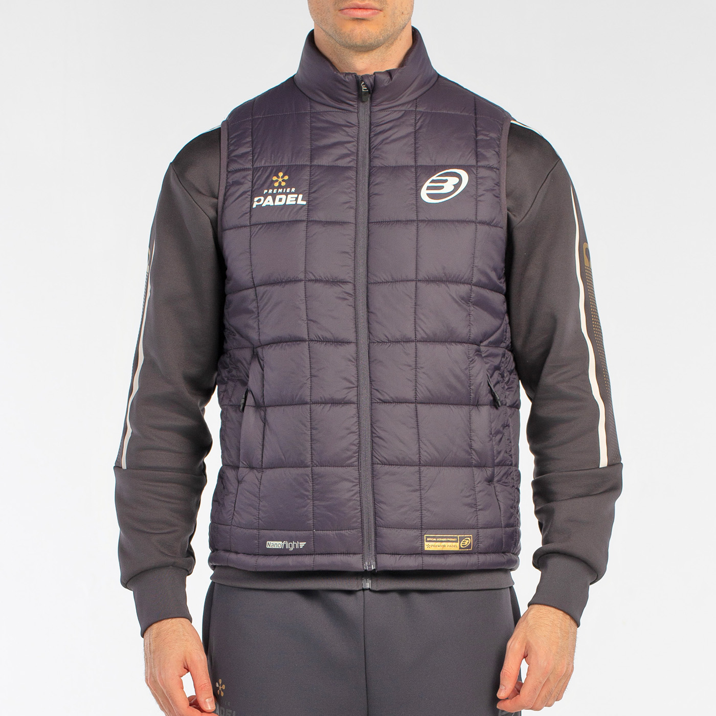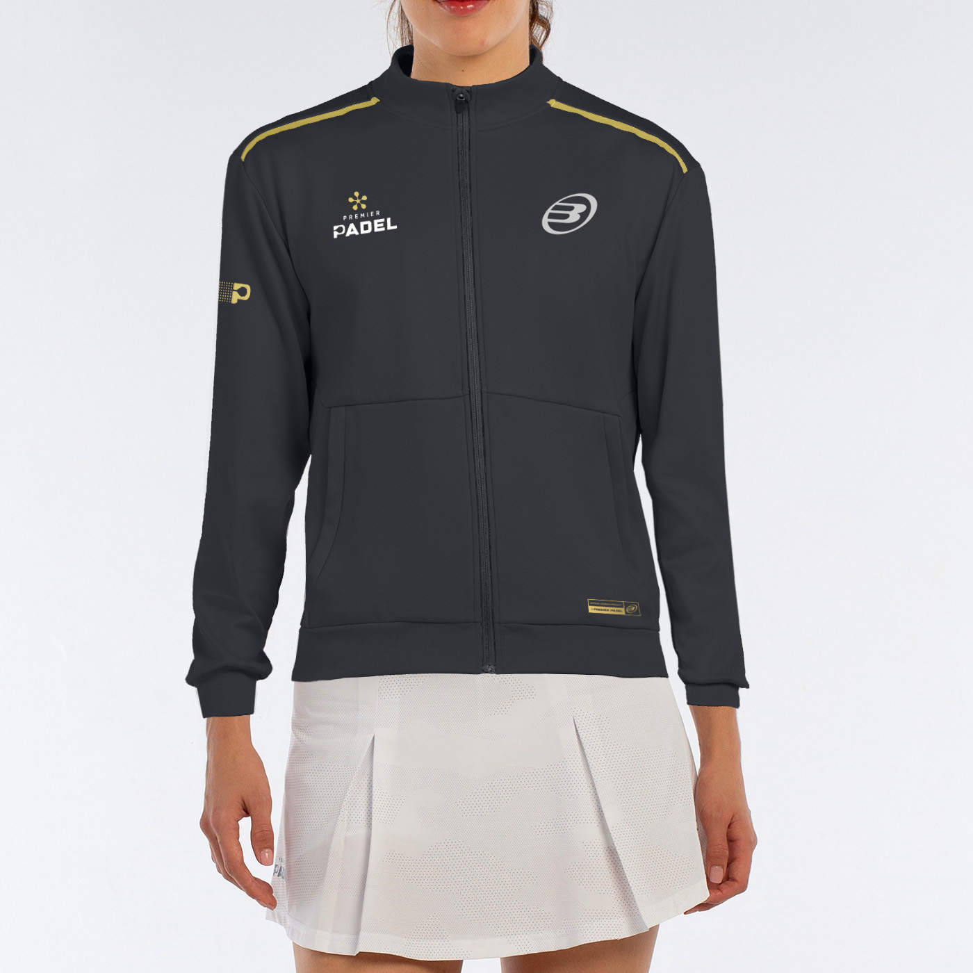 Diseñada con cremallera central, bolsillos laterales con cremalleras, sisas rematadas con banda elástica y bajo ajustable con goma y tancas. Rematada con cinta personalizada y decorada con los gráficos de Premier Padel.