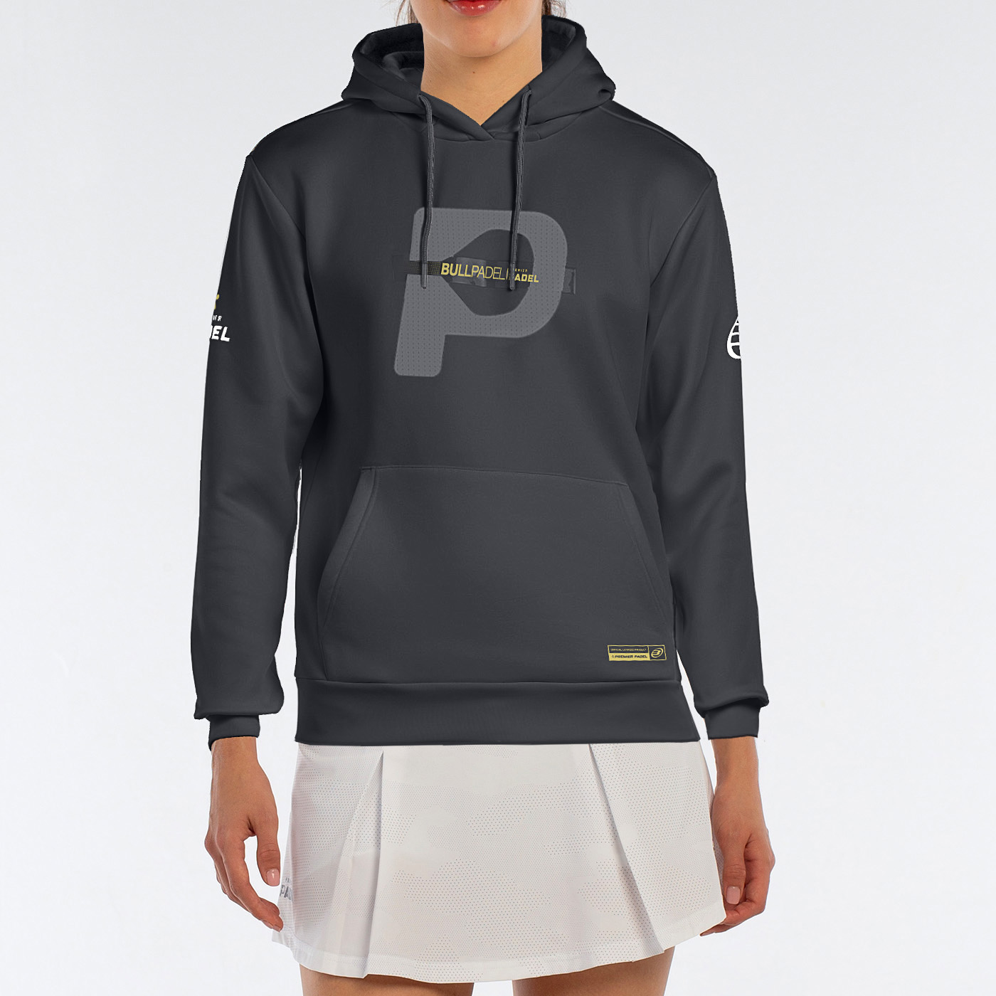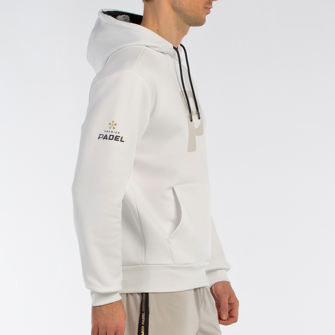 Sudadera de tejido de poliéster elástico con interior acabado en polar, cálida y confortable. Cuenta con la calidad Termalflex, tejido flexible y transpirable de alto rendimiento térmico. Prenda cerrada con capucha, puños y bajos de canalé, bolsillo canguro y cordón ajustable. Decorada con estampado en el pecho y los gráficos de Premier Padel.