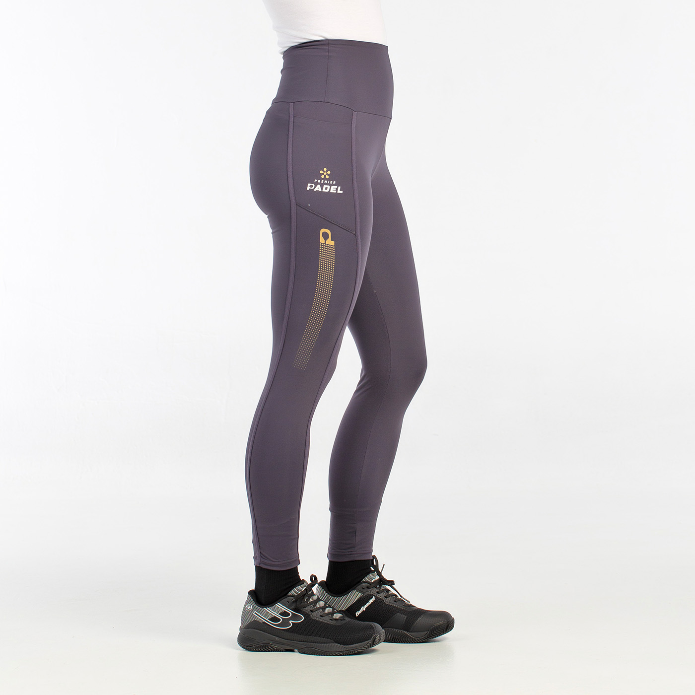 El diseño cuenta con una cinturilla ancha que esculpe la silueta, malla interior y costuras termoselladas rematadas con cintas ultrasónicas en los laterales. Decorada con los gráficos de Premier Padel.