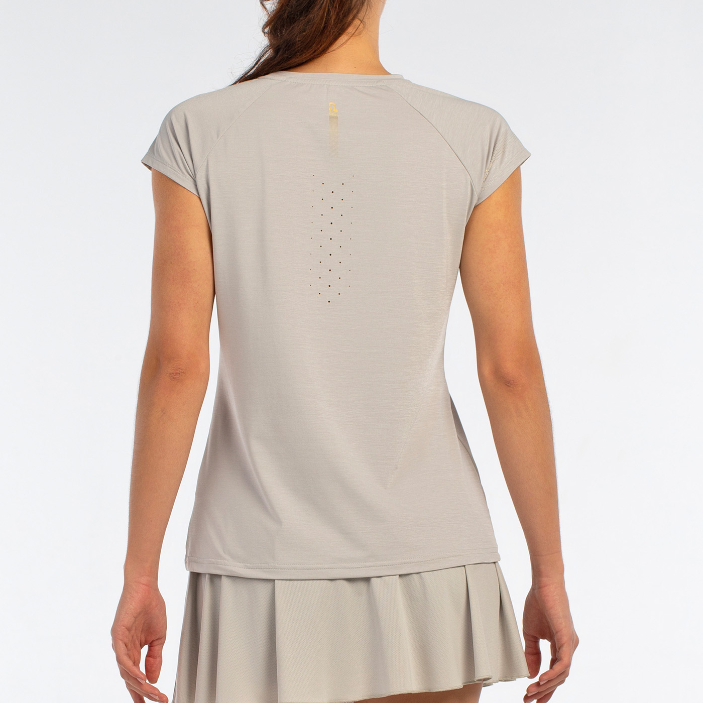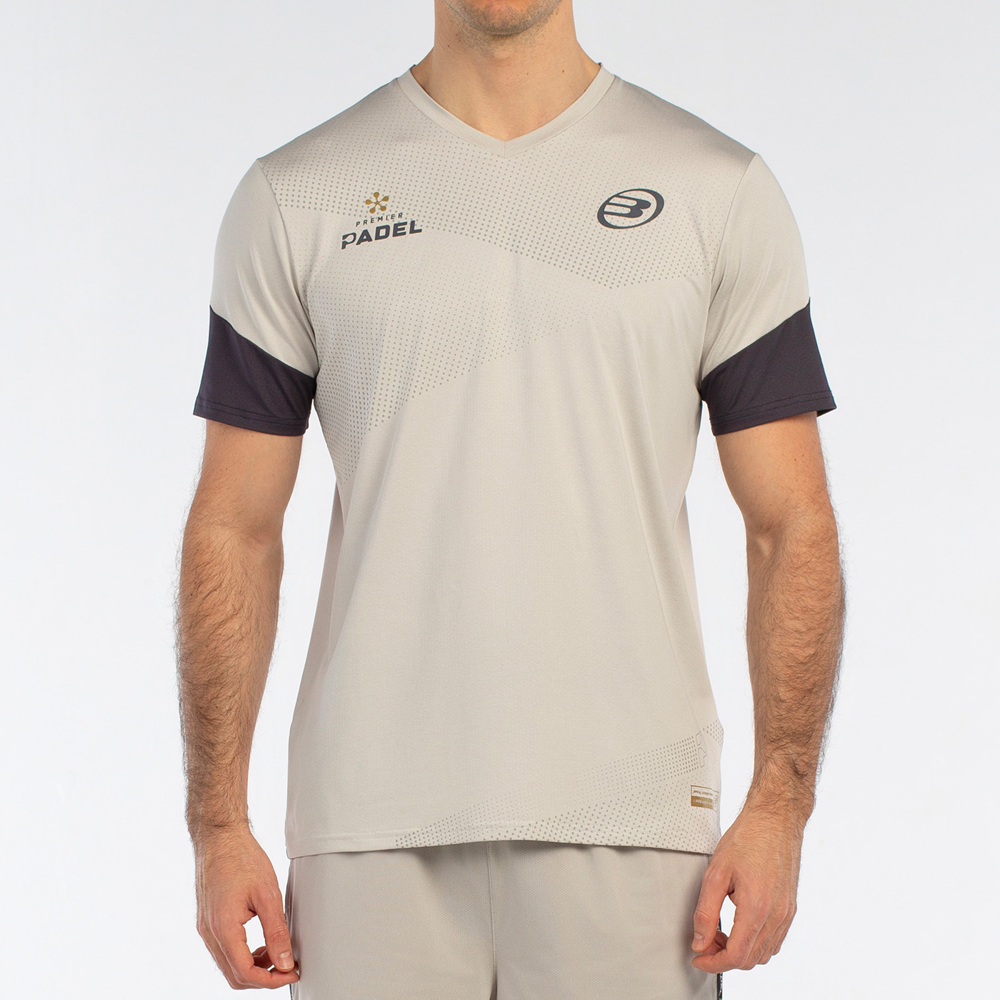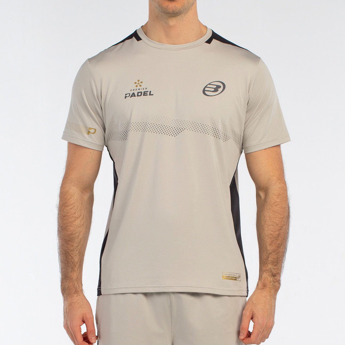 Diseño elegante de manga corta, cuello a la caja y costuras termoselladas rematadas con cintas ultrasónicas en los costados. Efectos de bandas a través de contrastes de tejido y color. Decorada con los gráficos de Premier Padel.