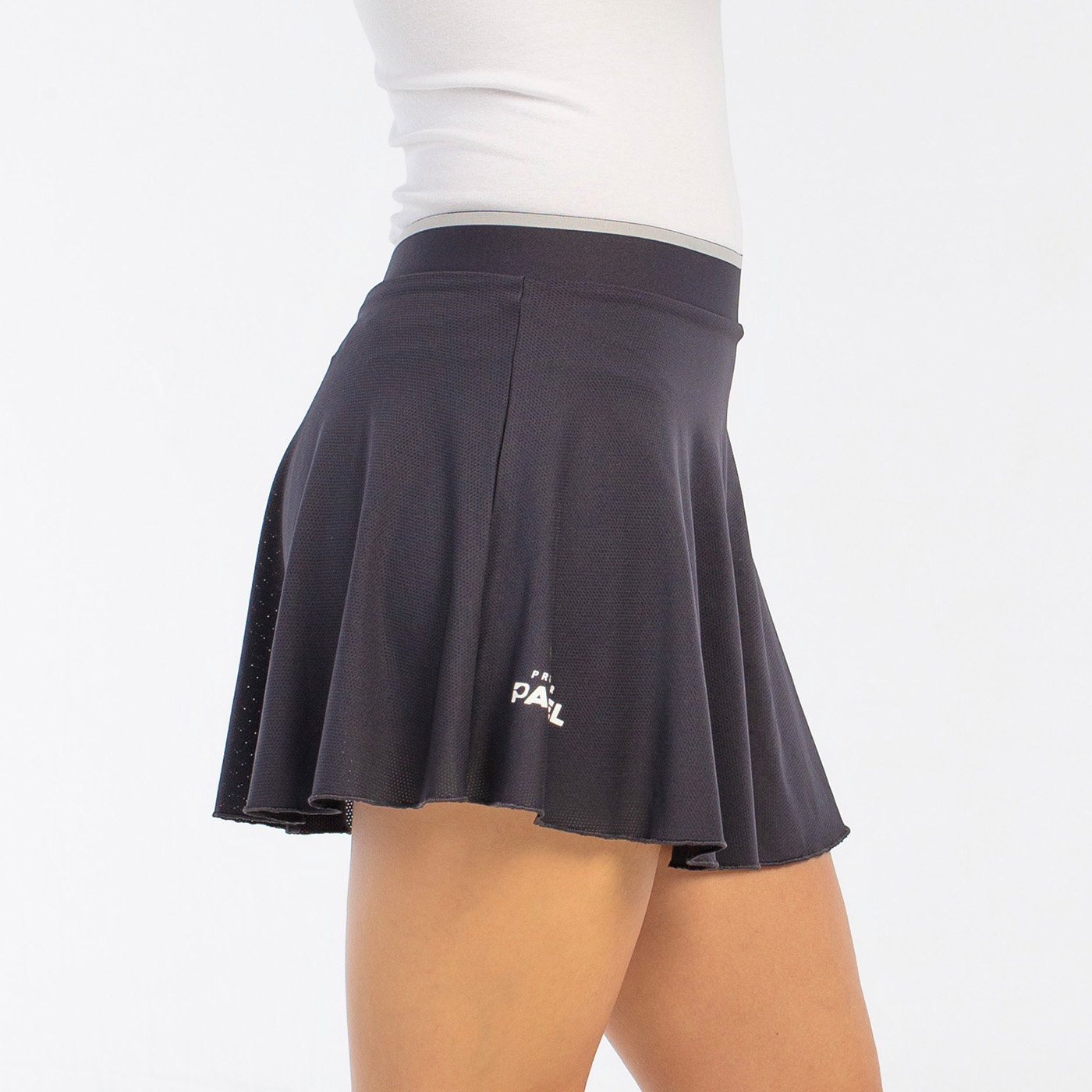 Diseñada con vuelo y cinturilla elástica bicolor. Decorada con los gráficos de Premier Padel.