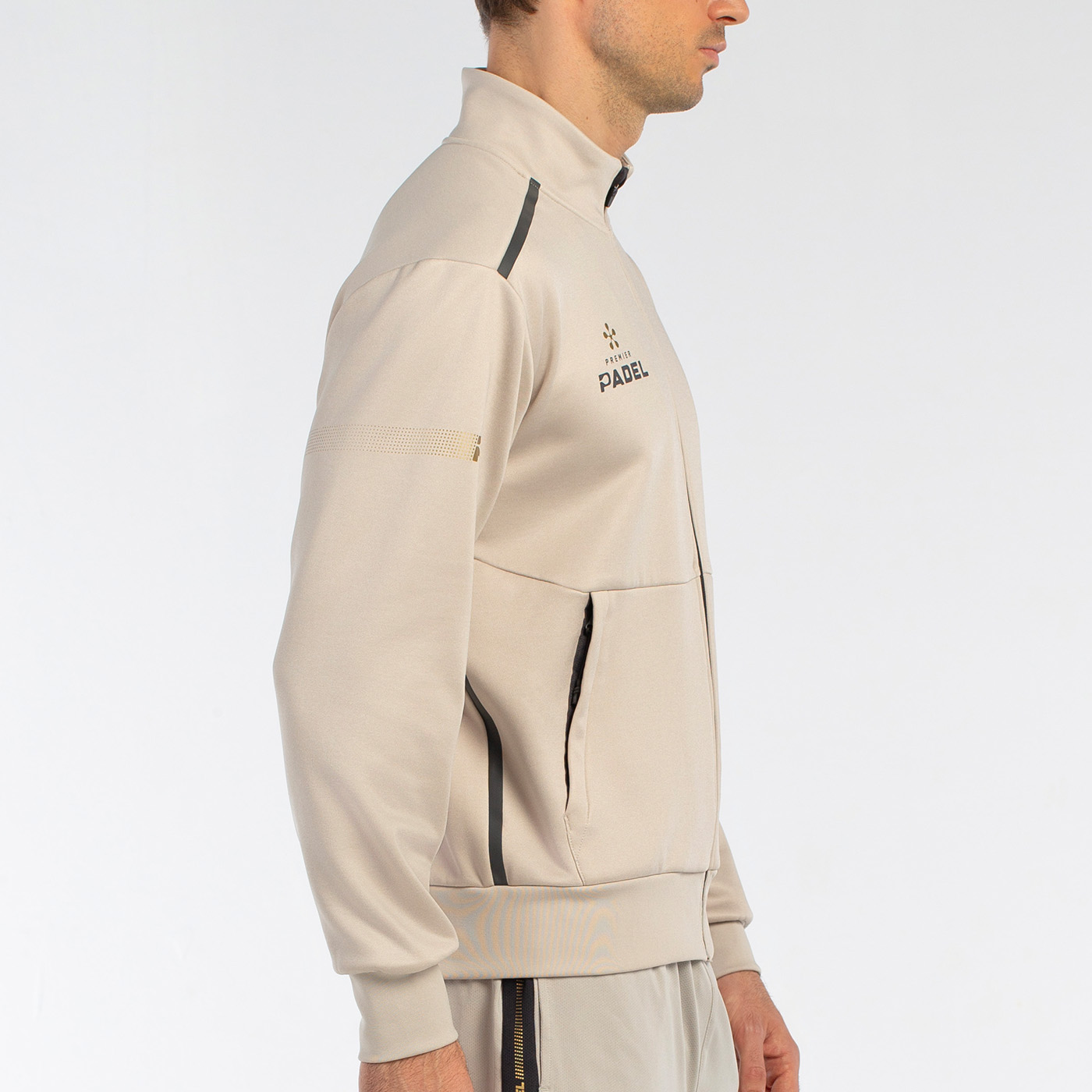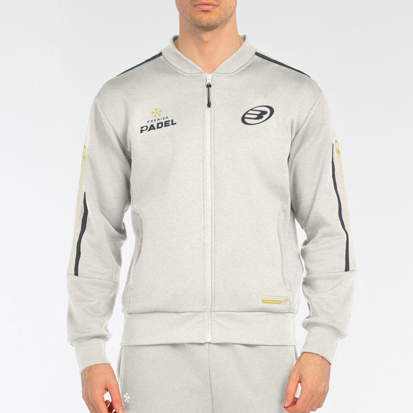 Sudadera de tejido de poliéster elástico con interior con acabado polar, cálida y confortable. Cuenta con la calidad Termalflex, tejido flexible y transpirable de alto rendimiento térmico. Diseñada con cremallera central, puños, cuello y bajos de canalé y bolsillos con cremallera. Decorada con los gráficos de Premier Padel.