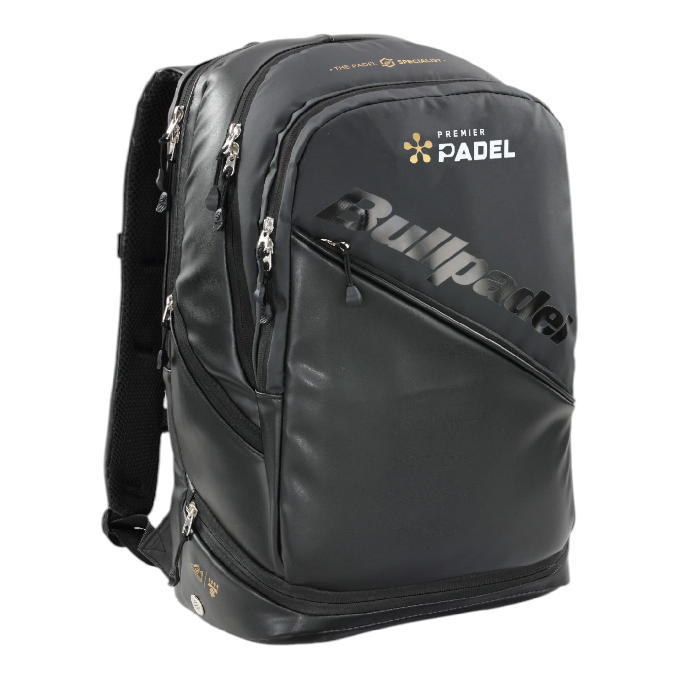 La mochila técnica HACK de Paquito Navarro, es el complemento ideal de su neuva pala Hack 04. esta mochila técnica dispone de un compartimento principal para guardar todo lo necesario, también dispone de un compartiemnto reforzado thermo con capacidad para dos palas y además cuenta con un departamento separado y ventilado para ropa y calzado, y un bolsillos especial acolchado par transportar portátiles o tablets. El diseño de la espaldera de esta mochila cuenta con piezas de foam que garantizan una máxima ventilación y comodidad a la espalda, además cuenta con una correa pectoral para un mejor ajuste al cuerpo y un bolsillo lateral donde puedes guardar tu bote de bolas. Personalizada con el logo de Premier.