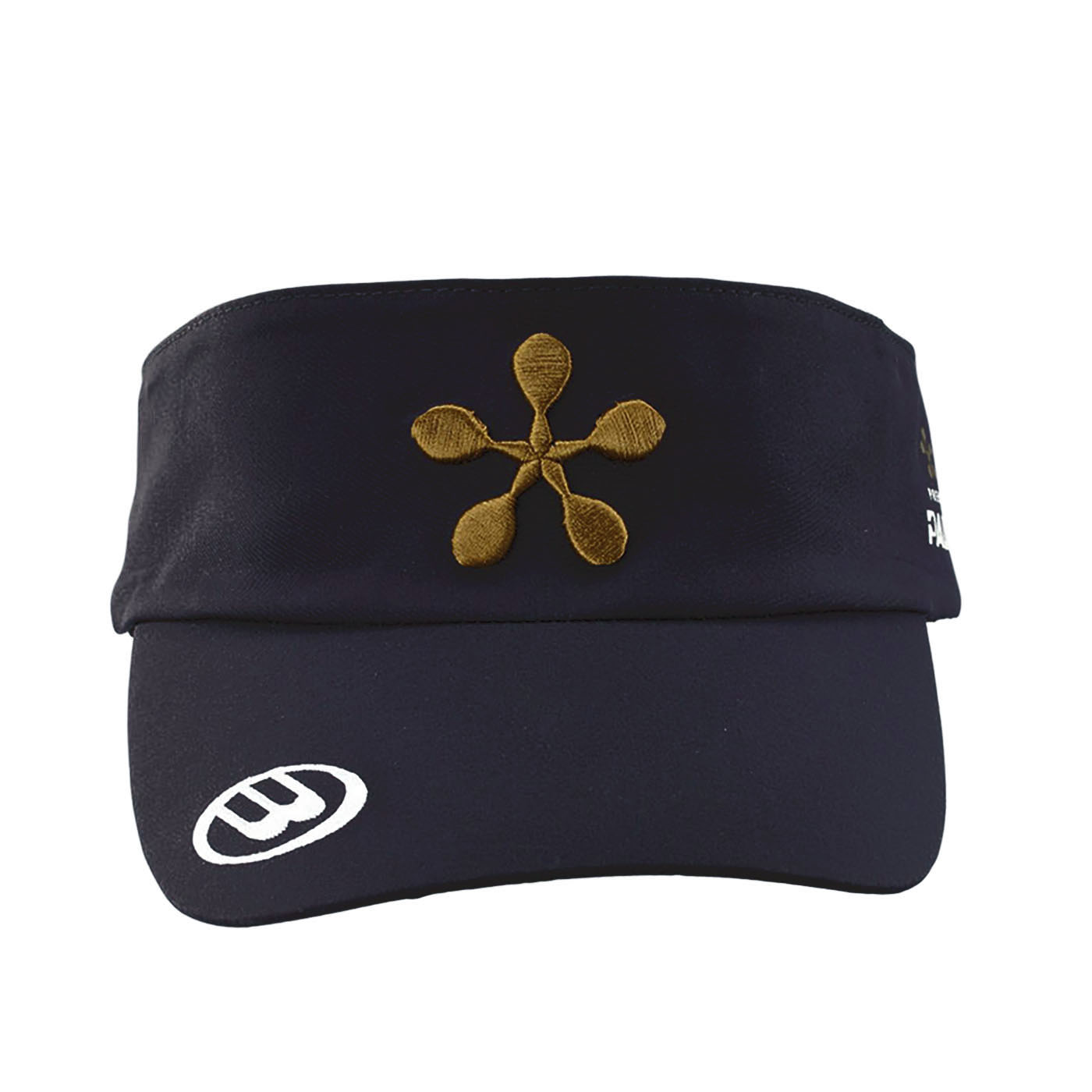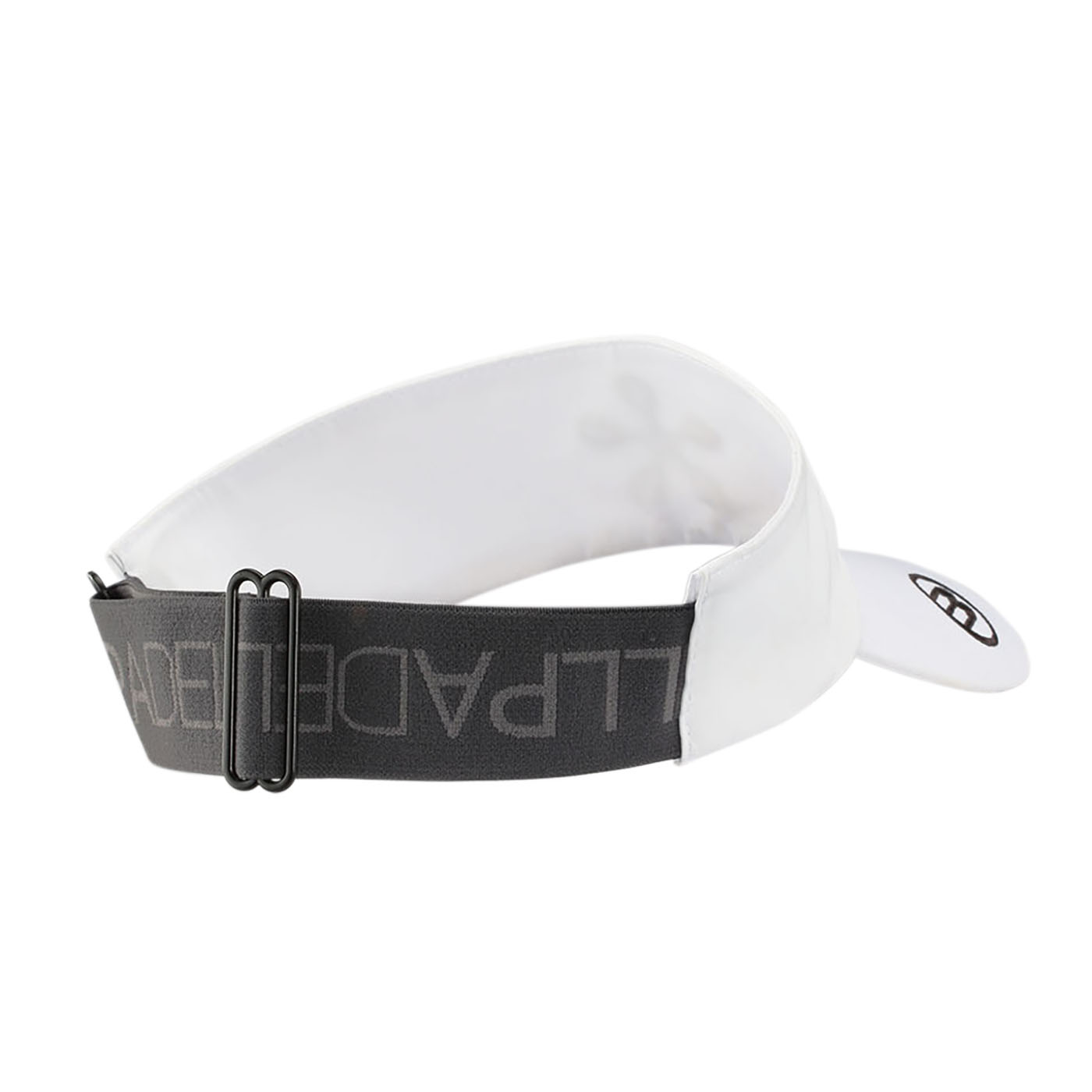 Visera en tejido bielástico con logo bordado y sistema de ajuste con velcro en parte de atrás. Parte delantera curva para más protección de la claridad. Banda de sudor absorbente alrededor y parta superior descubierta.