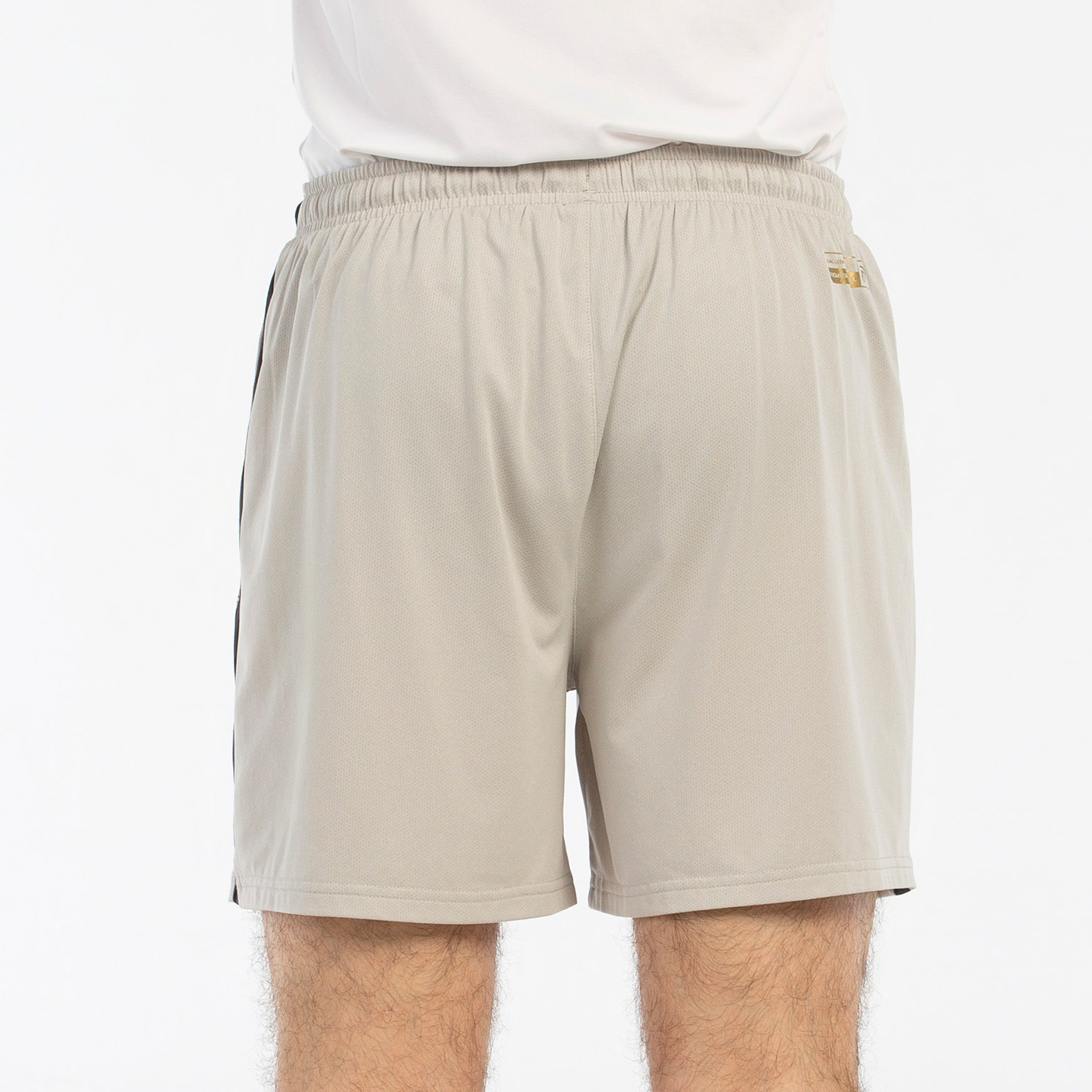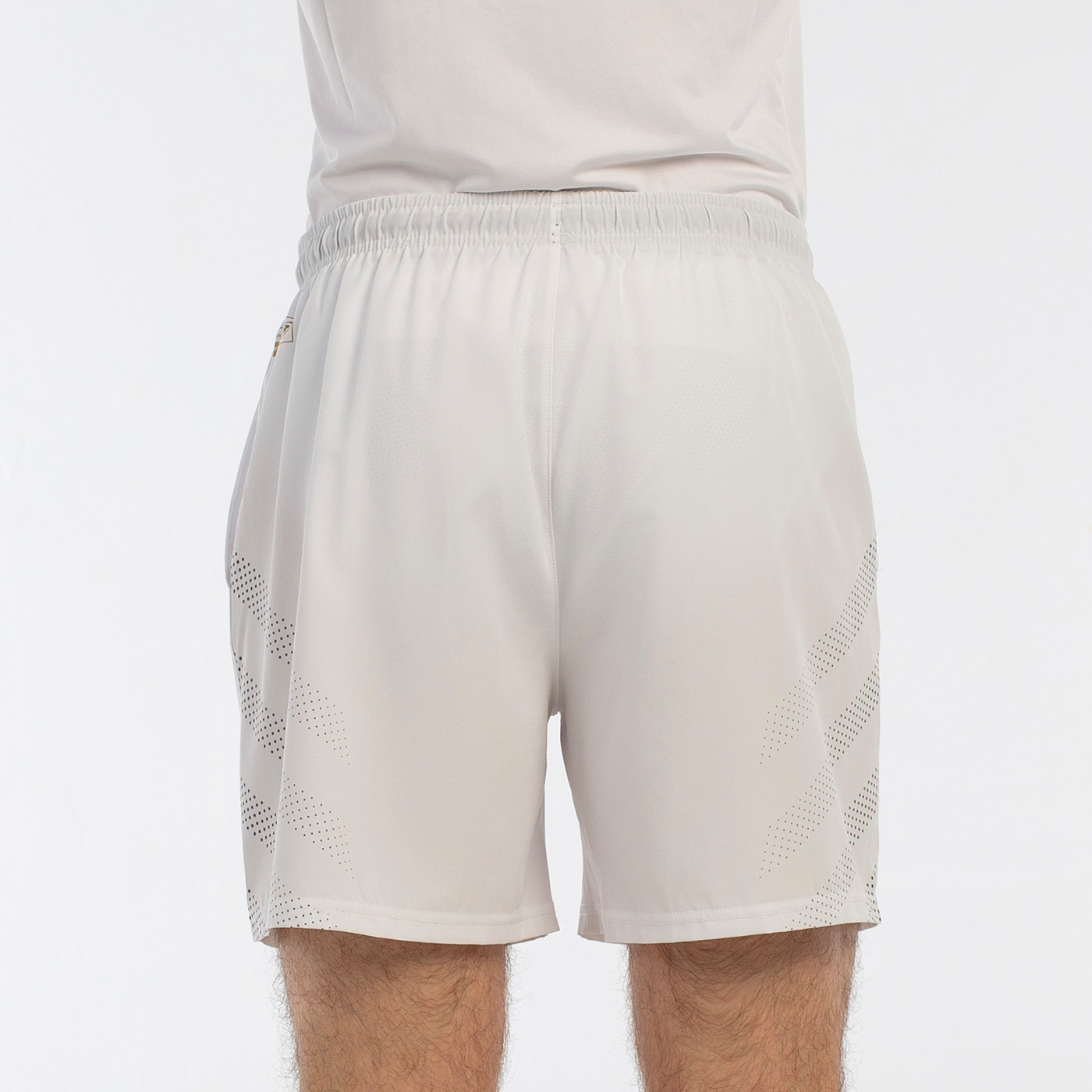 Bermuda en tejido de rejilla de poliéster elástico. Se le aplica la tecnología Drynamic, utiliza los microfilamentos para reducir la humedad y ayudar a la transpiración. Diseño compuesto de pantalón con un largo de 42 cm, bandas laterales a contraste, cinturilla ajustable con cordón, bolsillos y suspensorio interior de rejilla. Decorada con los gráficos de Premier Padel.