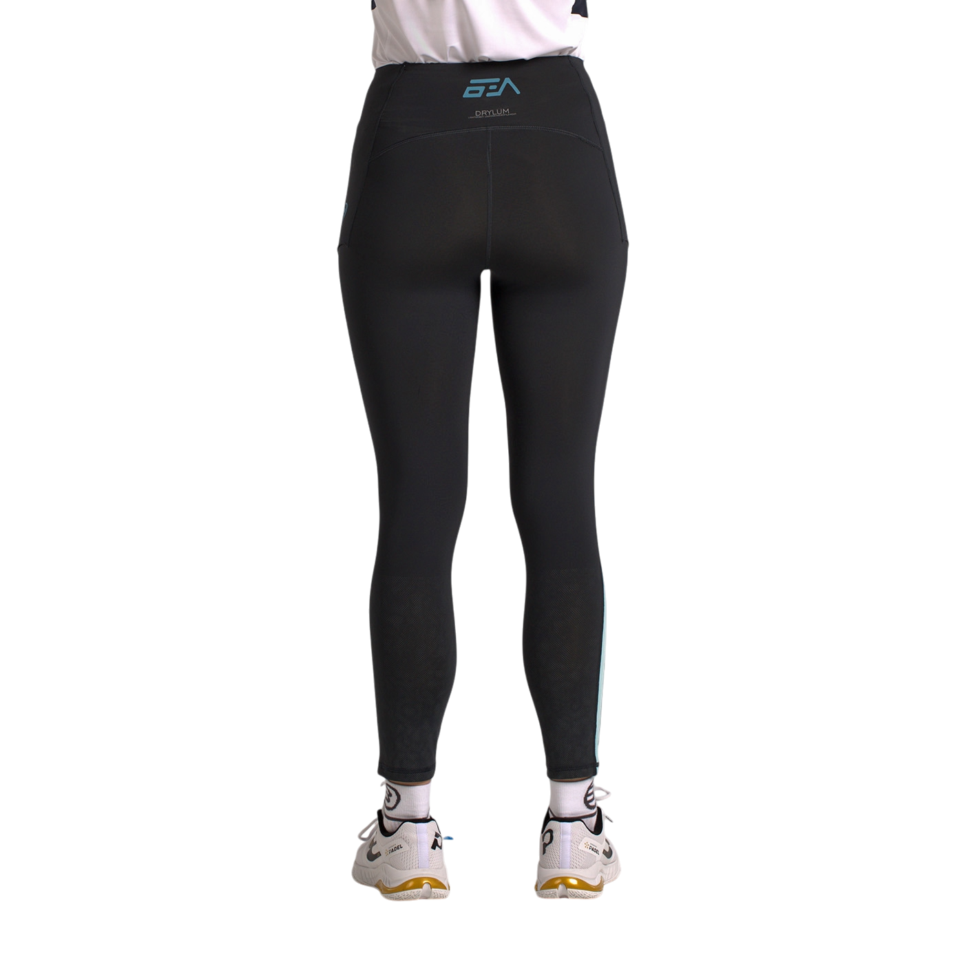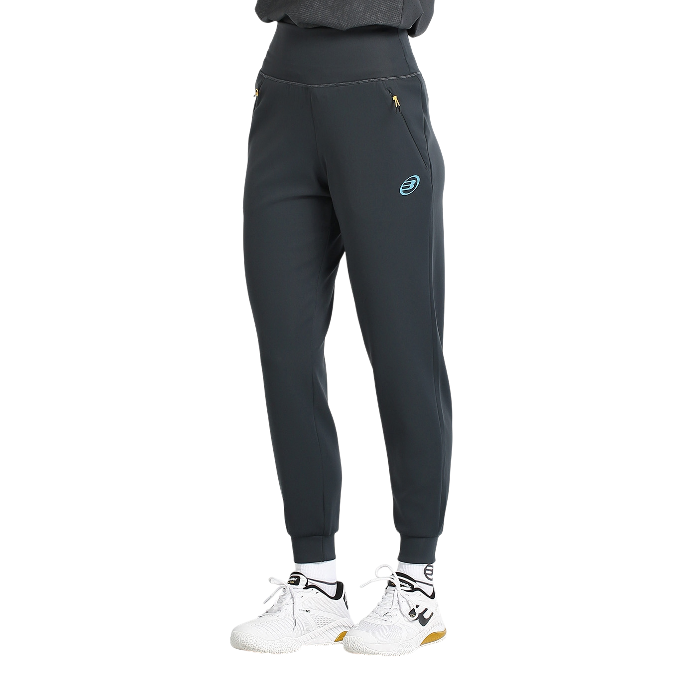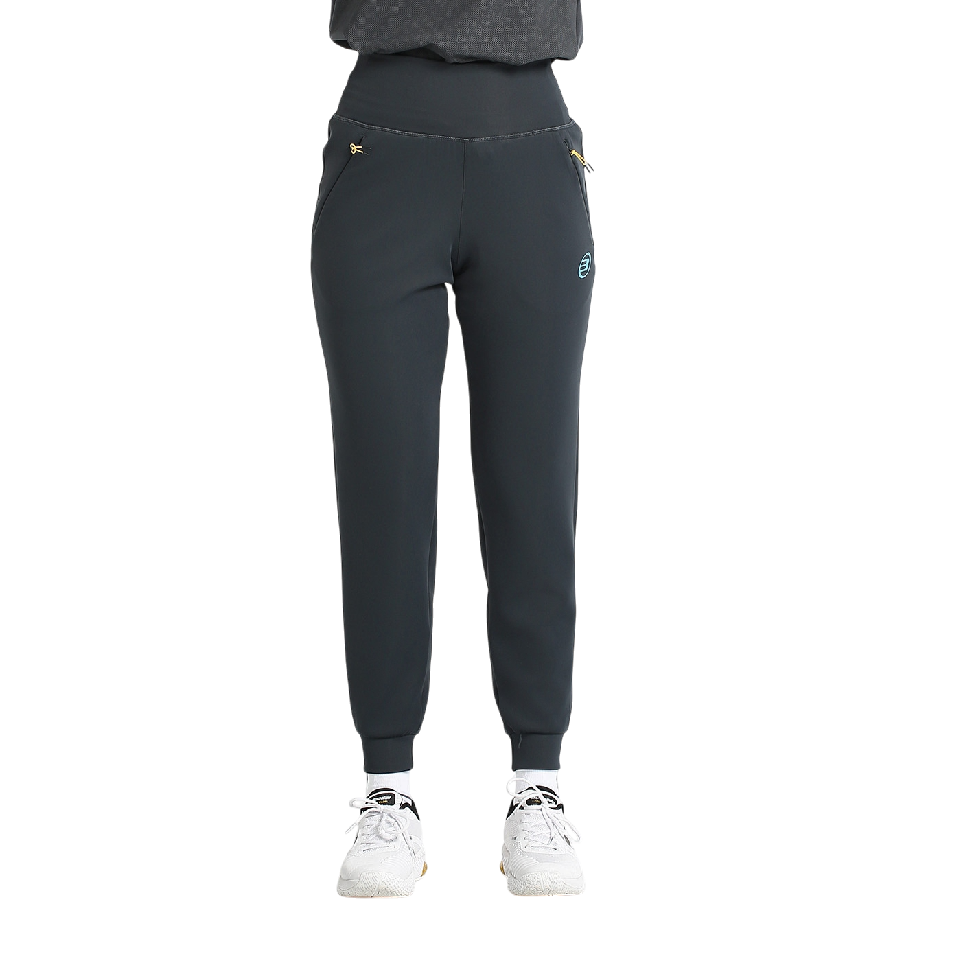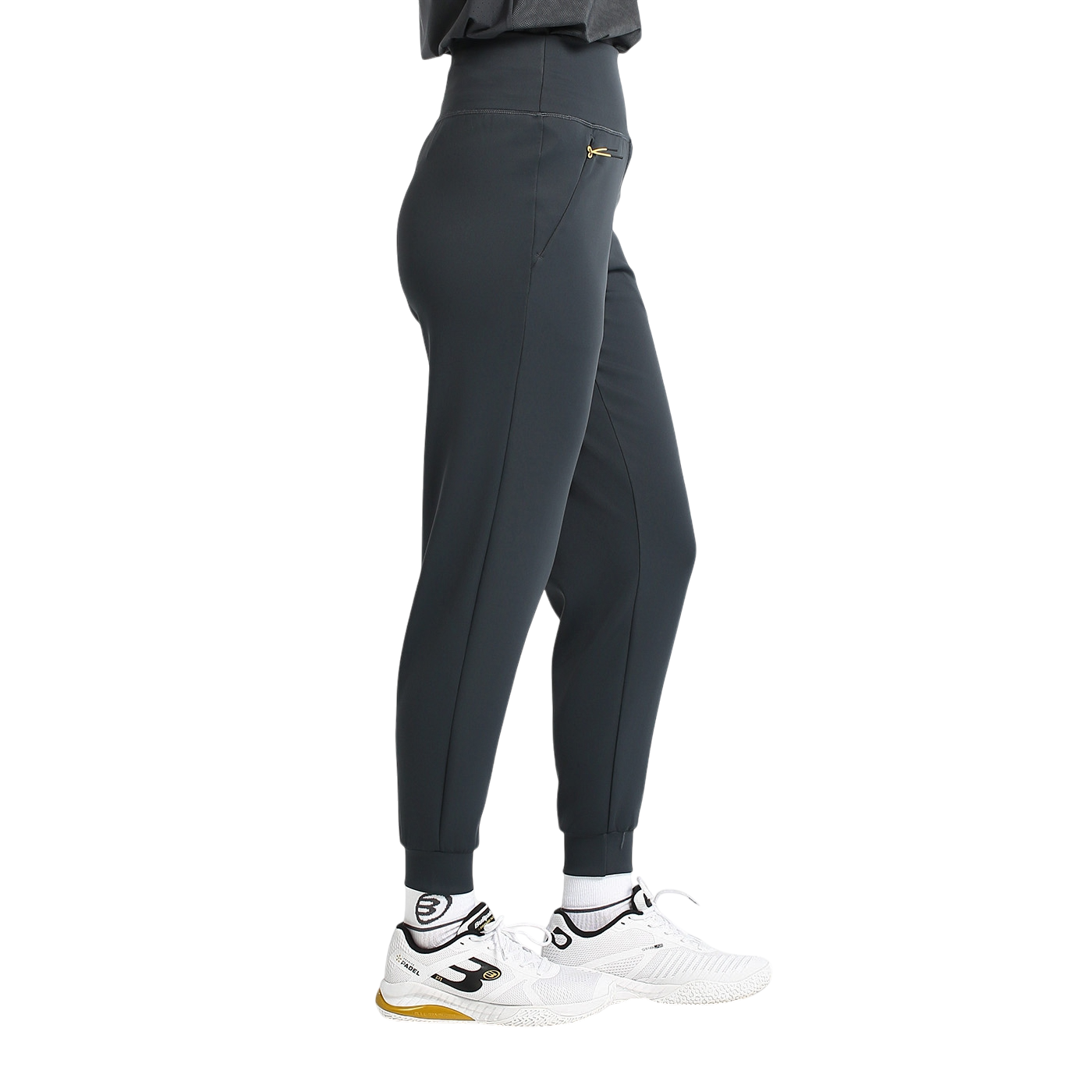 Pantalón con puño y cinturilla alta. Está confeccionado en Piqué de poliéster con Spandex, un tejido técnico y ligero, que aporta confort y funcionalidad a la prenda. El diseño, que esculpe la silueta y se ajusta en el interior con un cordón, cuenta con bolsillos con cremallera invisible y está decorado con la firma de la colección con efecto reflectante. Además, incorpora la tecnología Drynamic, que utiliza microfilamentos para reducir la humedad y favorecer la transpiración.
