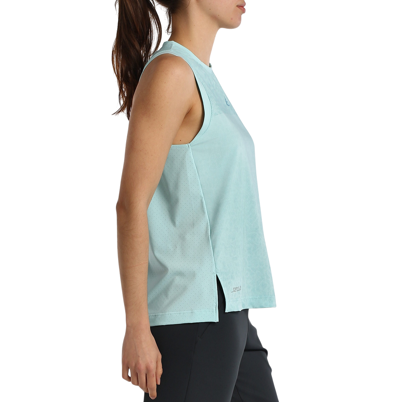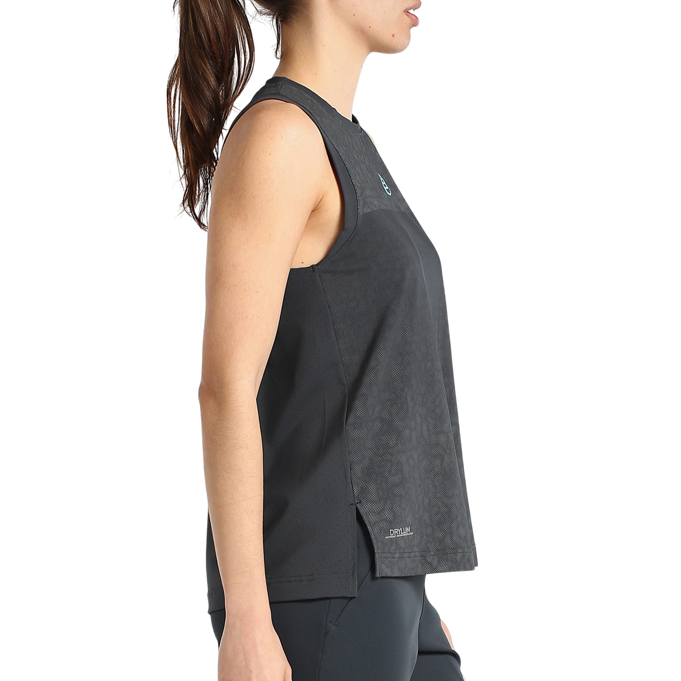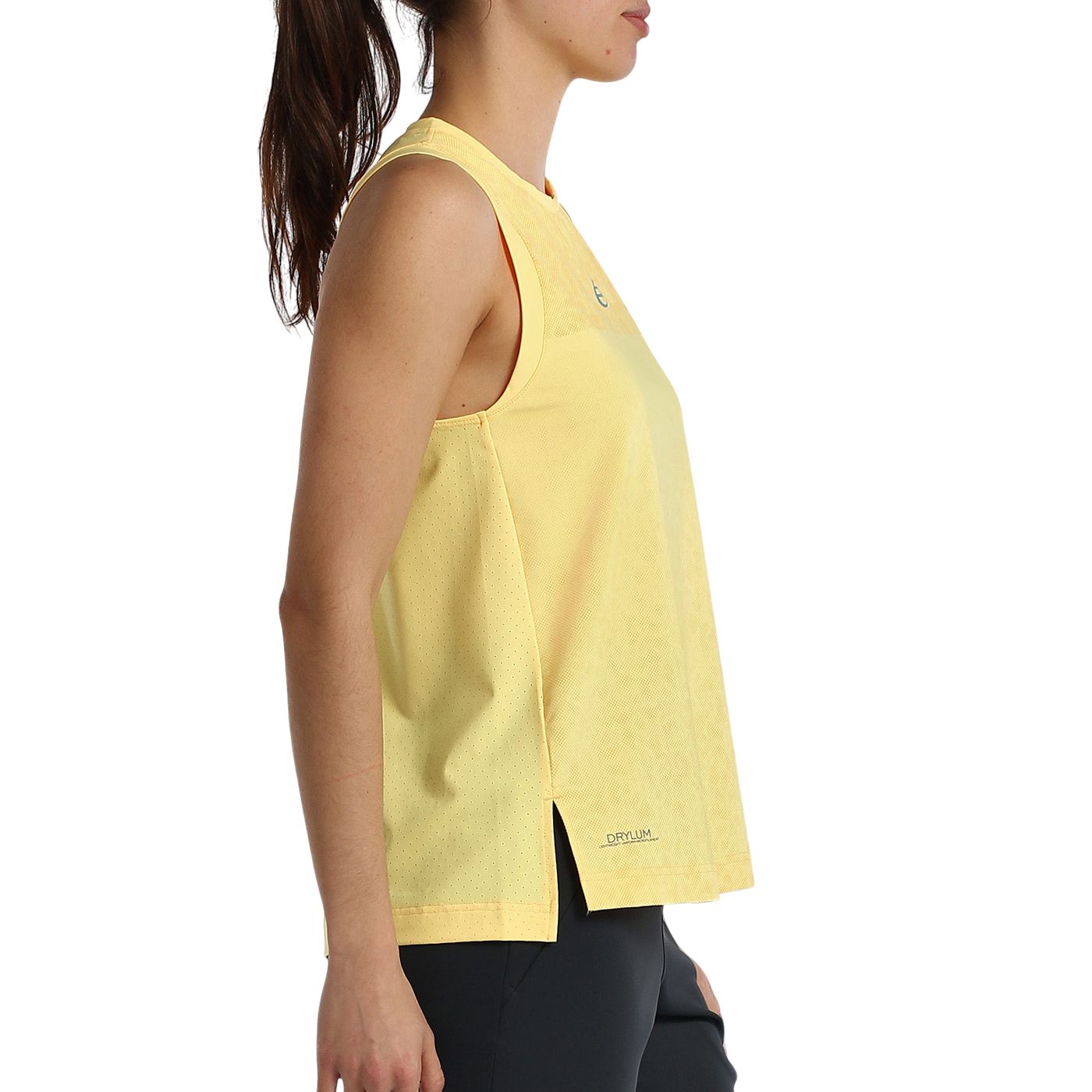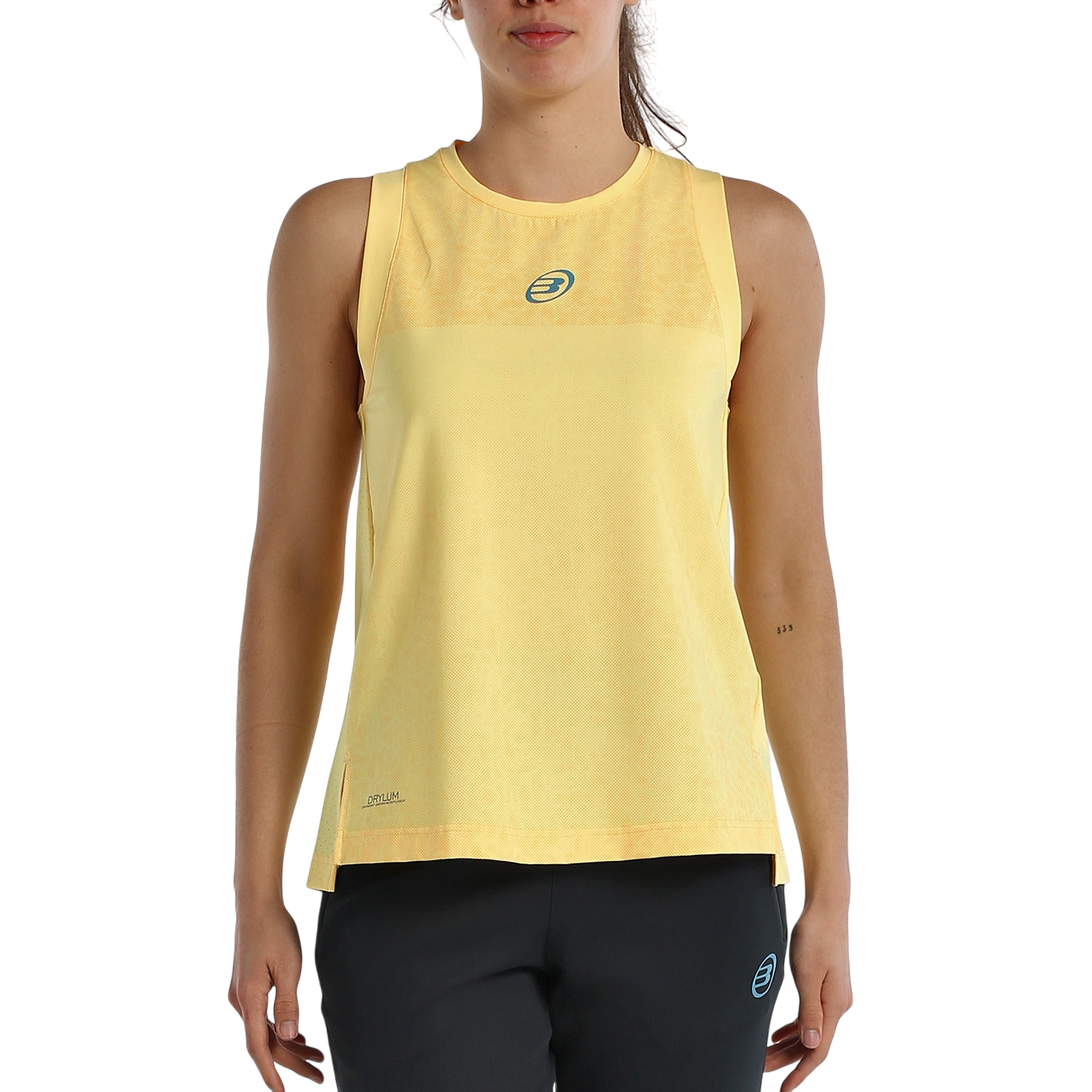 Camiseta sin mangas y cuello a la caja, Estampada. Cortes laterales siendo la parte de la espalda un poco más larga. Logotipo de Bullpadel en el pecho y de Bea en la espalda.