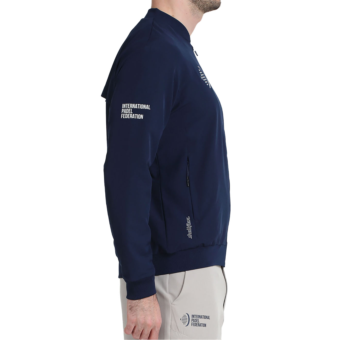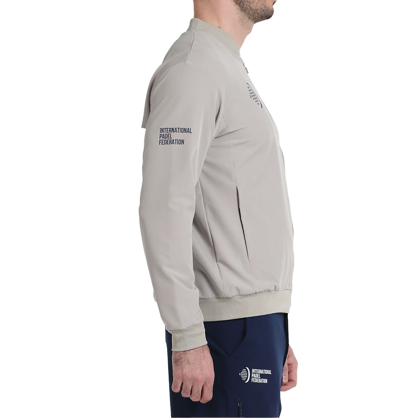 Chaqueta elegante de nuestra línea especial de la Federación Internacional de Pádel. El diseño, decorado con prints de la línea, presenta cremallera central, bolsillos laterales con cremallera y rib en cuello, puños y bajo. Está fabricada con tejido a la plana en poliéster y Spandex elástico en dos direcciones, técnico y ligero, dotando a la prenda de confort, flexibilidad y funcionalidad. Además, incorpora la tecnología Shellflex para aportar mayor flexibilidad y transpirabilidad, y el acabado Durable Water Repellent.