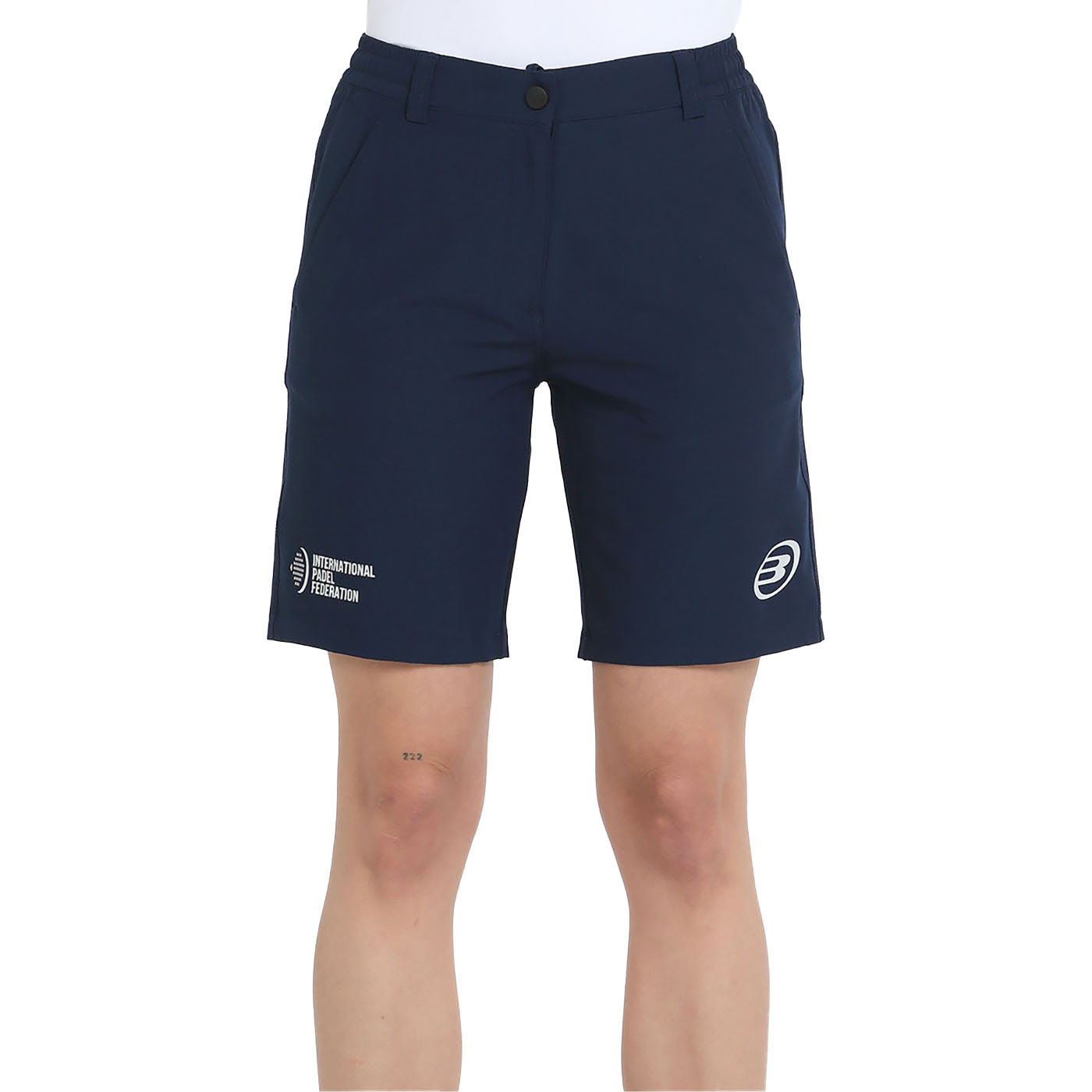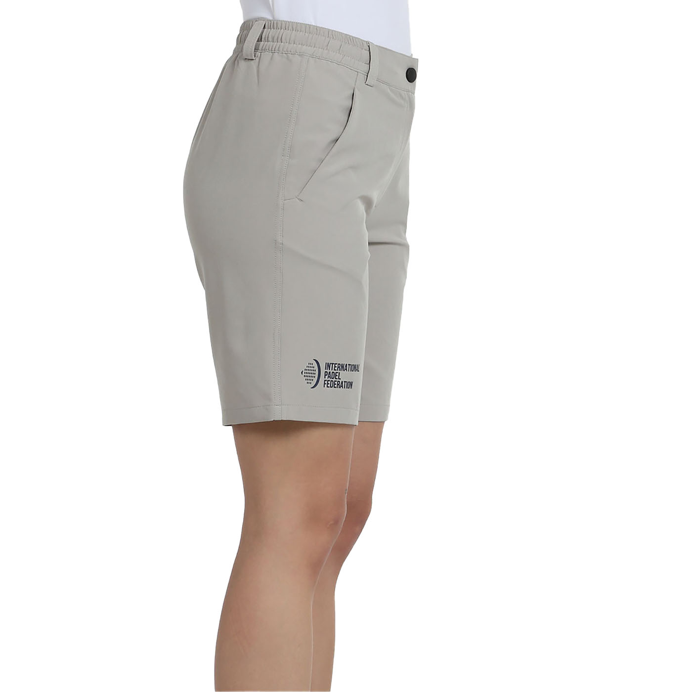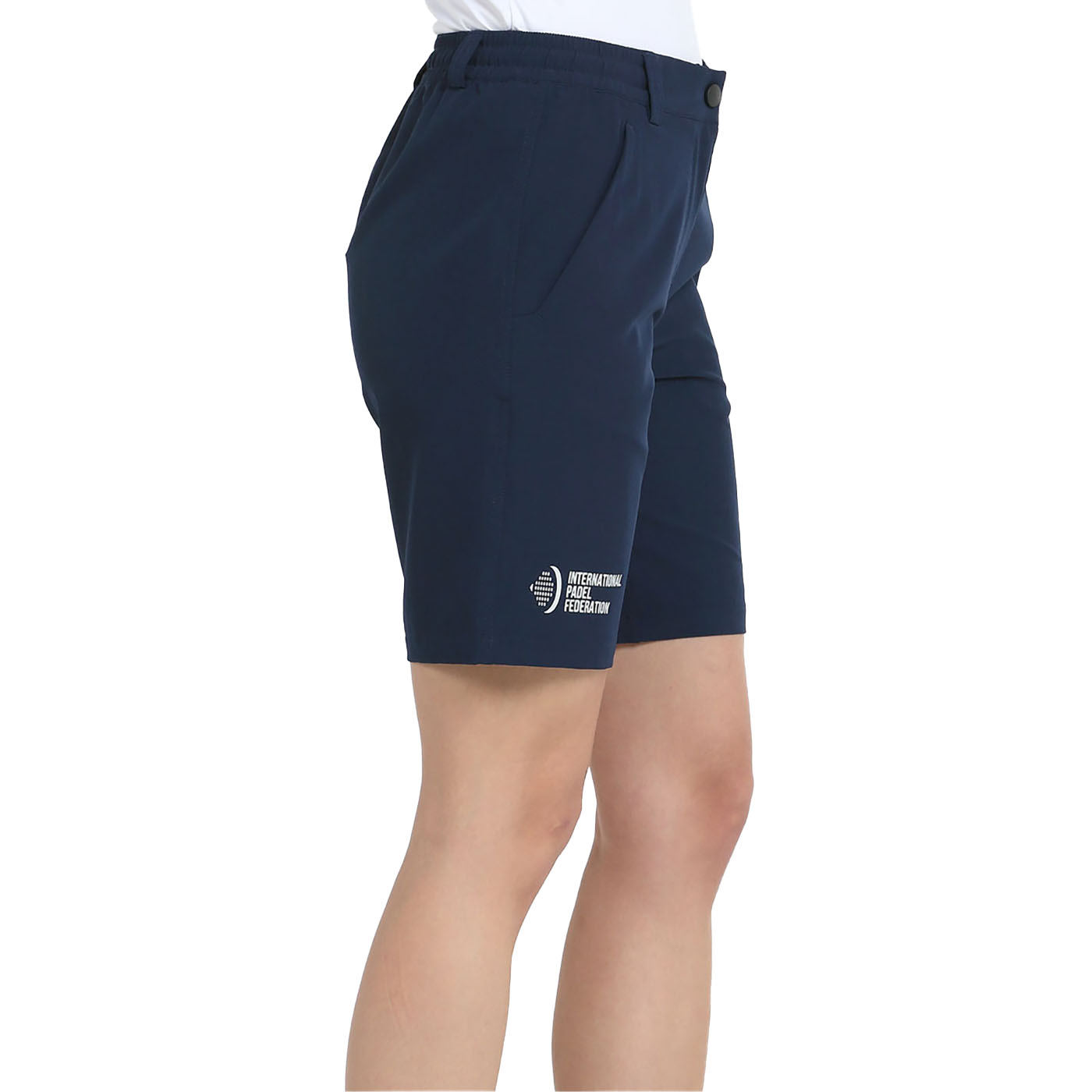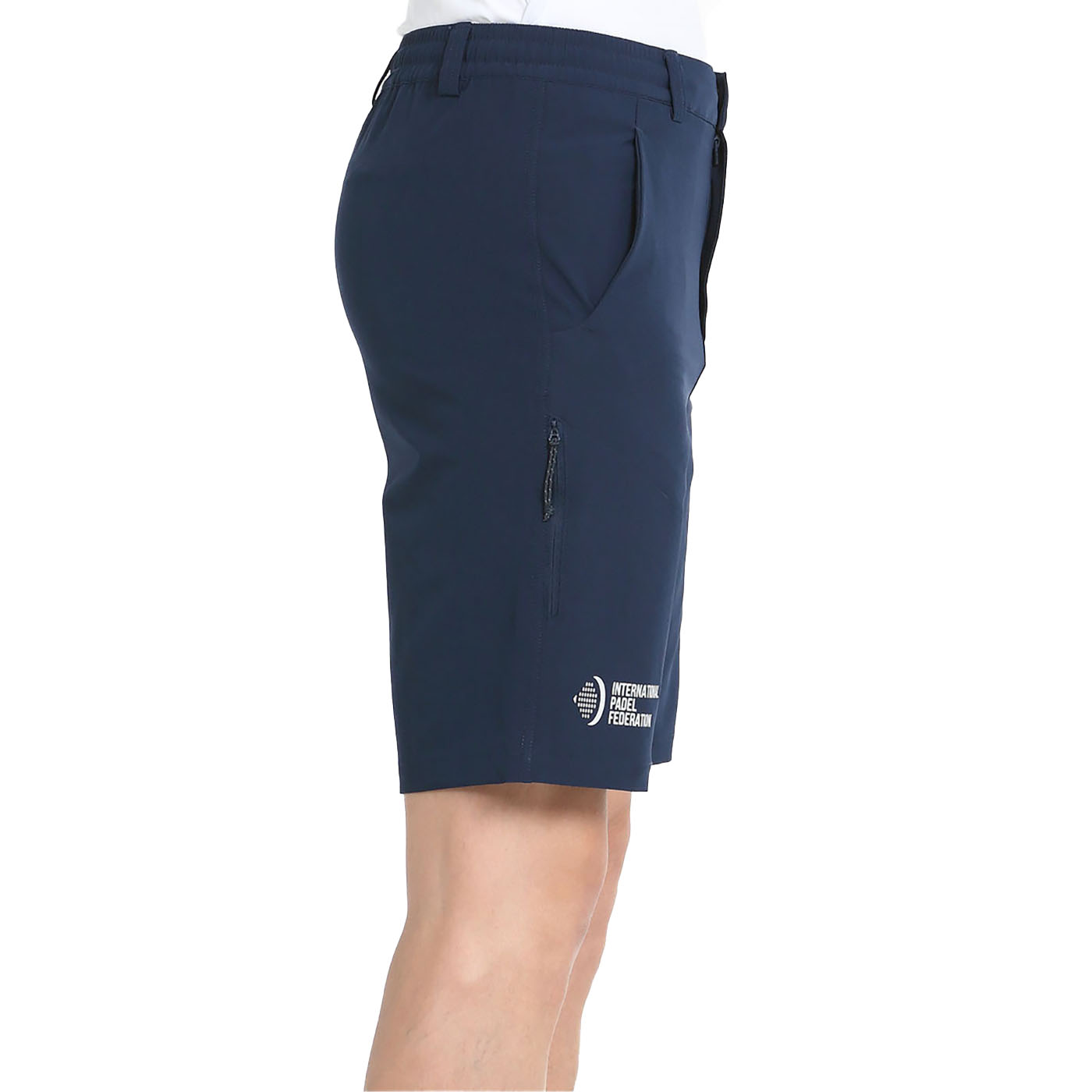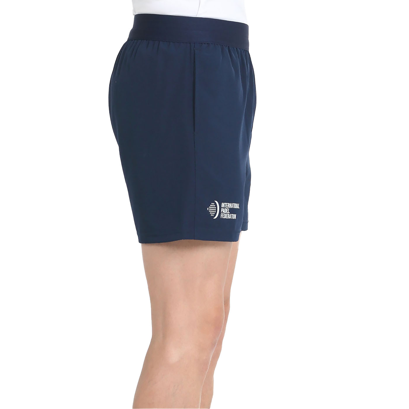 Bermuda de nuestra línea especial de la Federación Internacional de Pádel. El diseño, decorado con prints de la colección, cuenta con cinturilla de goma con cordones para ajustar, bolsillos laterales y suspensor en el interior. Está fabricada en tafeta de poliéster y Spandex elástico en dos direcciones, técnico y ligero, dotando a la prenda de confort, flexibilidad y funcionalidad. Incorpora la tecnología Binamic para proporcionar gran libertad de movimiento en dos direcciones y la tecnología Quickerdry, que utiliza micro-filamentos para reducir la humedad y favorecer la transpiración.