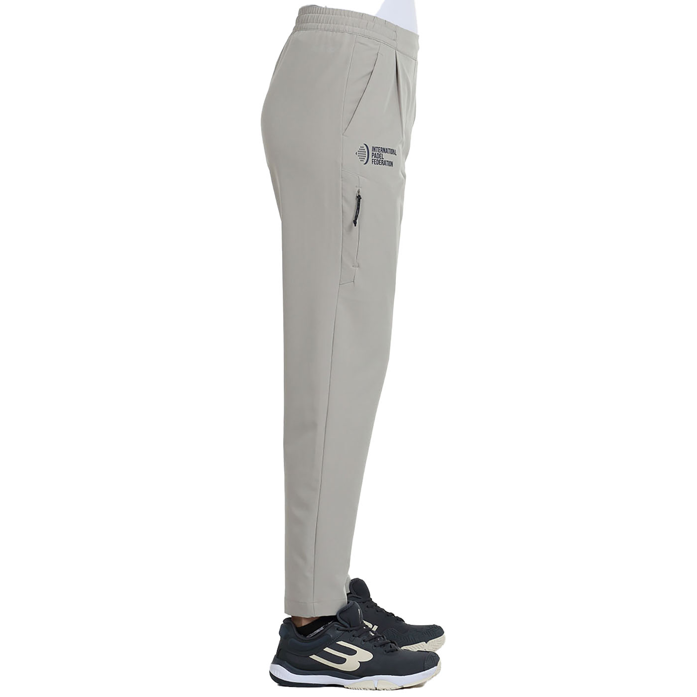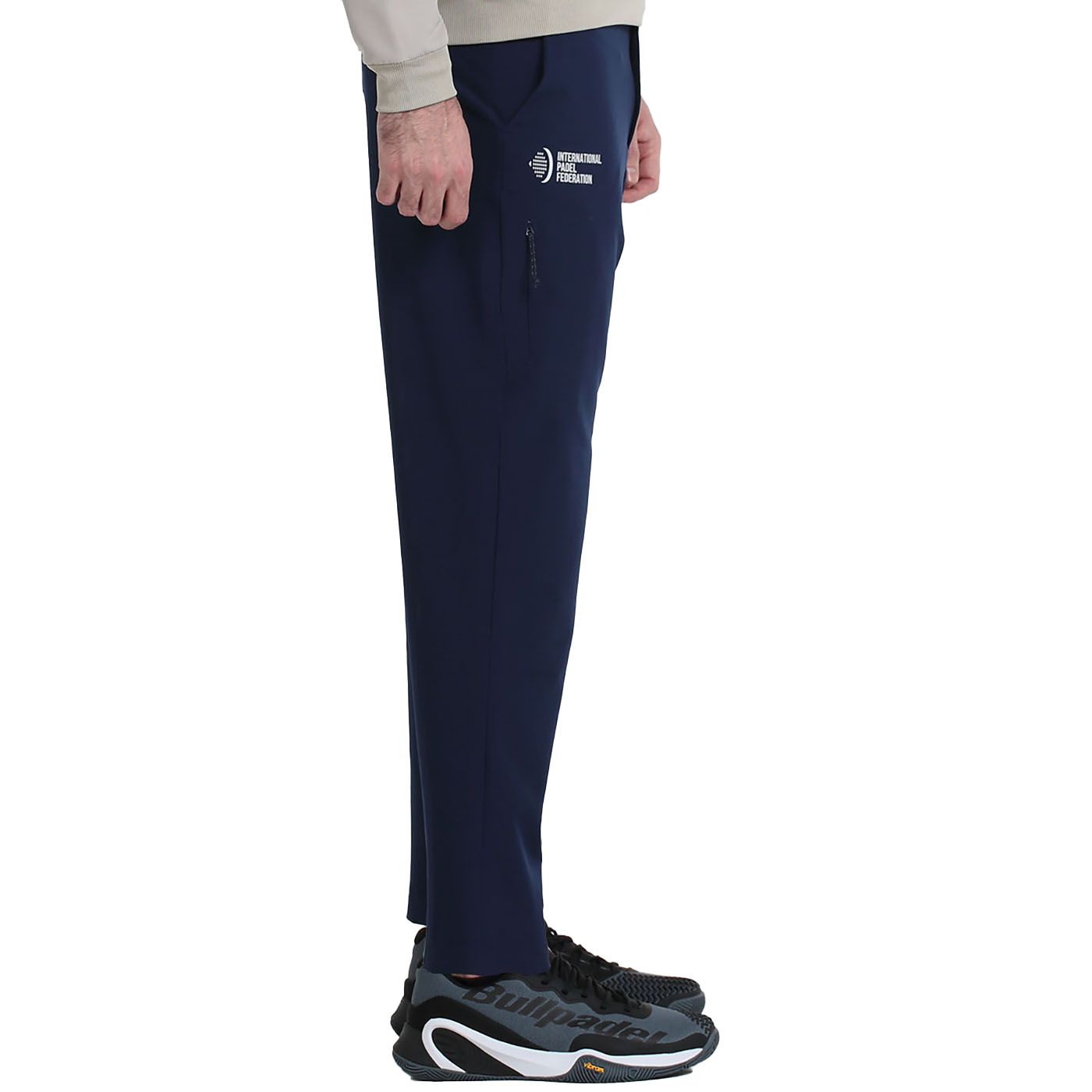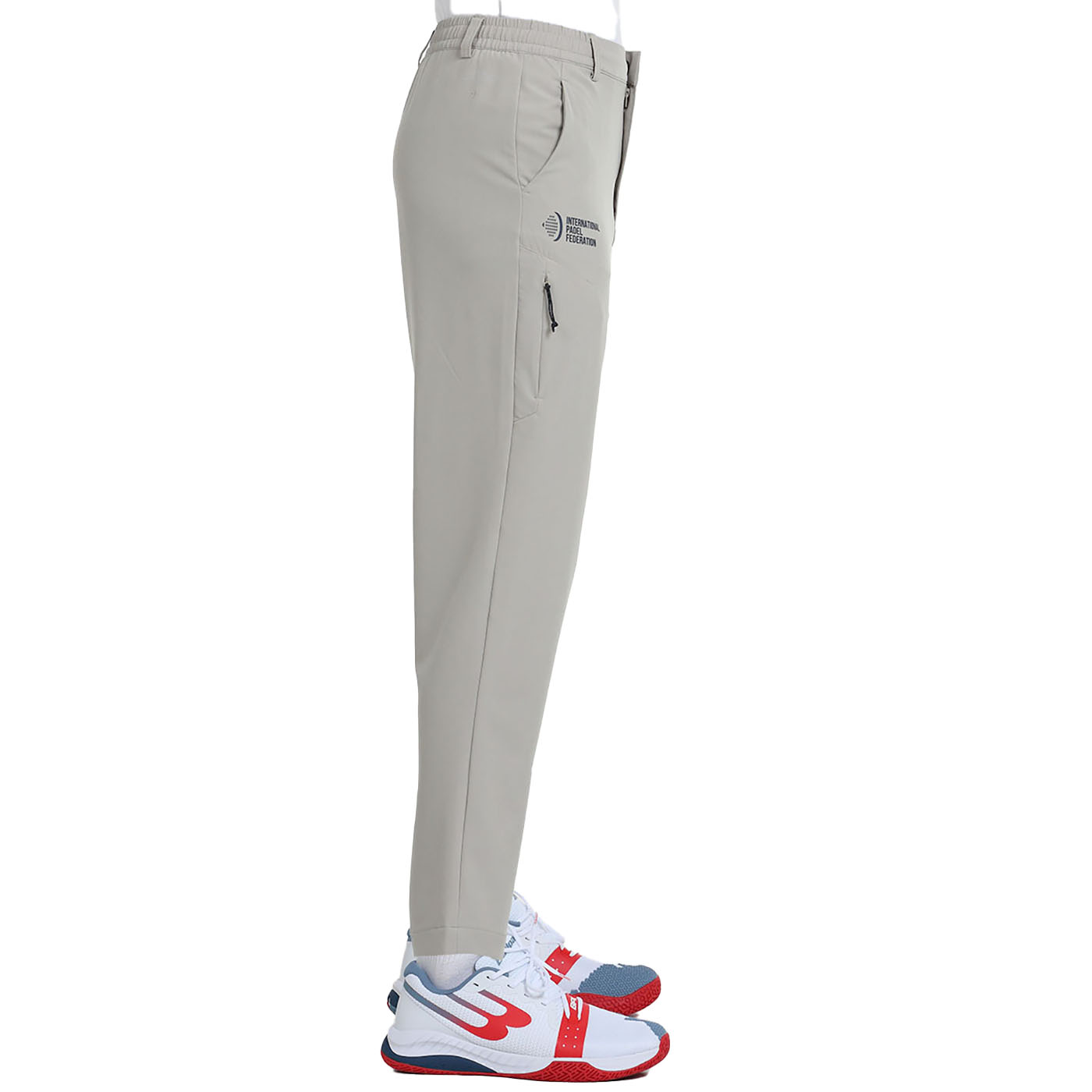 Pantalón largo de nuestra línea especial de la Federación Internacional de Pádel. El diseño, decorado con prints de la colección, cuenta con cinturilla elástica, cordones para ajustar y bragueta con cremallera y automático como cierre. También integra bolsillos inclinados, trabillas para la colocación del cinturón y un tercer bolsillo con cremallera. Está fabricado con tejido a la plana en poliéster y Spandex elástico en dos direcciones, técnico y ligero, dotando a la prenda de confort, flexibilidad y funcionalidad. Además, incorpora la tecnología Shellflex para aportar mayor flexibilidad y transpirabilidad, y el acabado Durable Water Repellent.