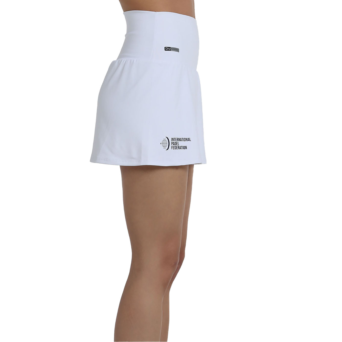 Falda con cinturilla alta de nuestra línea Power is my Power, una de las destacadas de la Federación Internacional de Pádel. Su diseño, pensado para esculpir la figura, cuenta con malla interior y detalles con prints de la colección. Está fabricada con tejido técnico y ligero en punto de poliéster elástico, dotando a la prenda de confort y funcionalidad. Además, incorpora la tecnología Drynamic, que utiliza micro-filamentos para reducir la humedad y favorecer la transpiración.