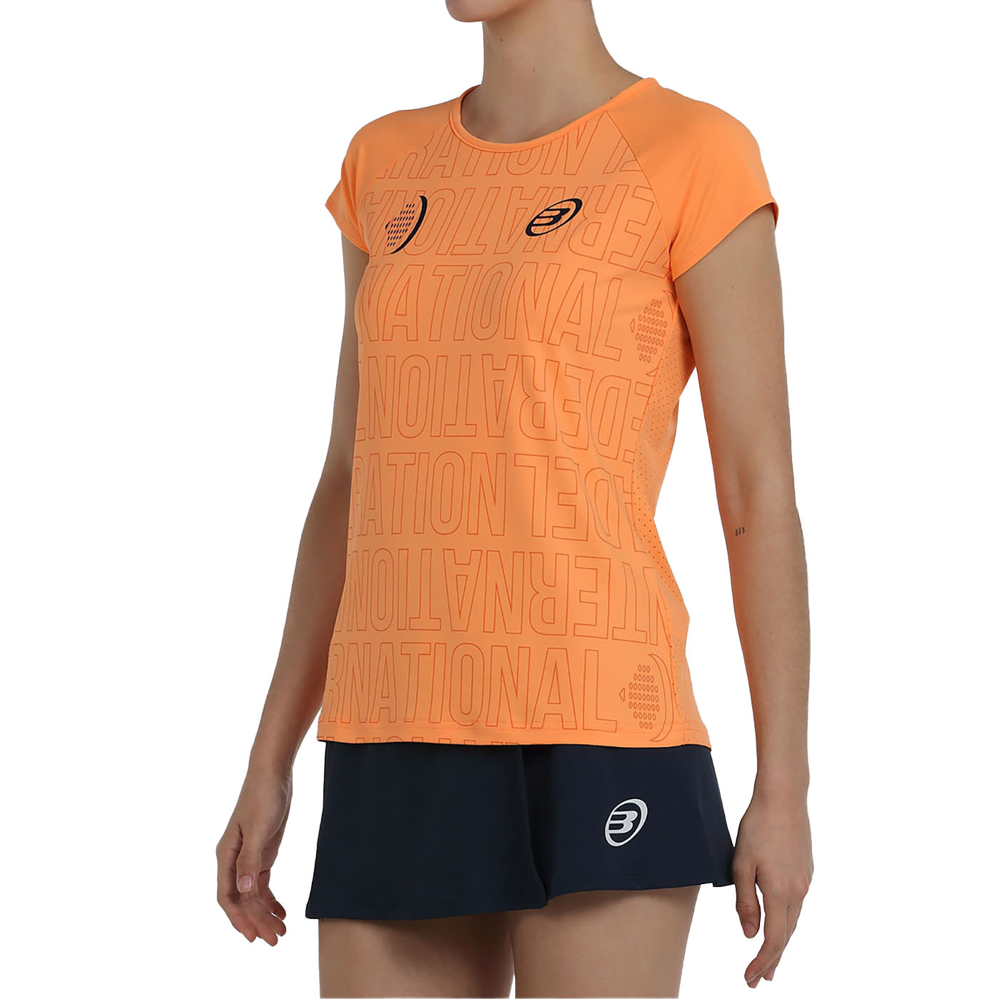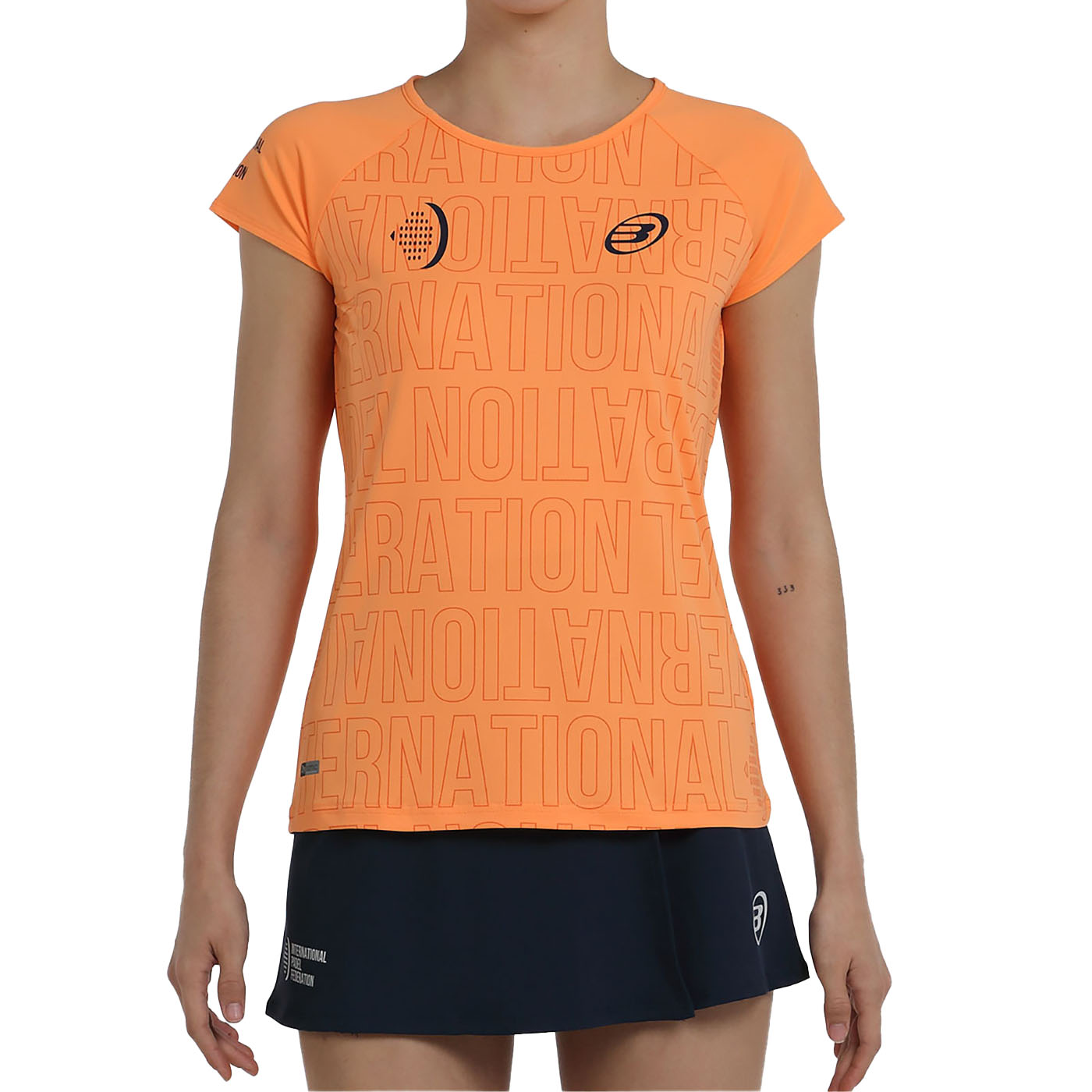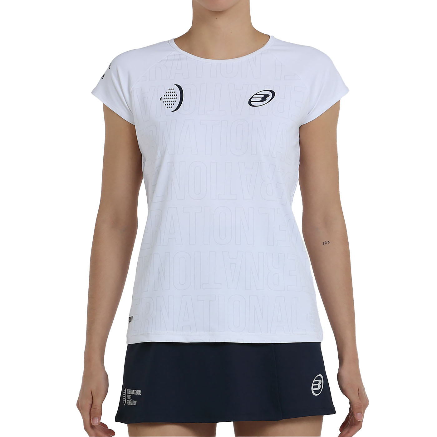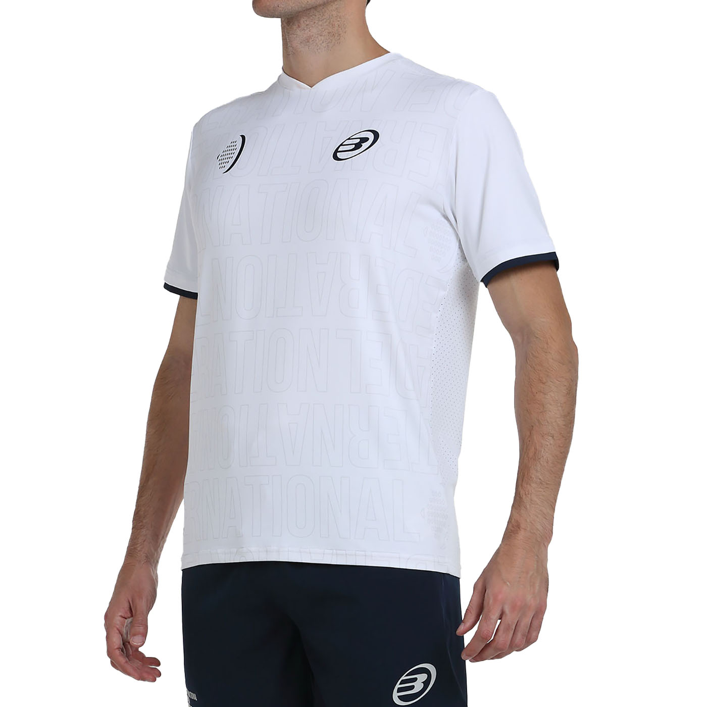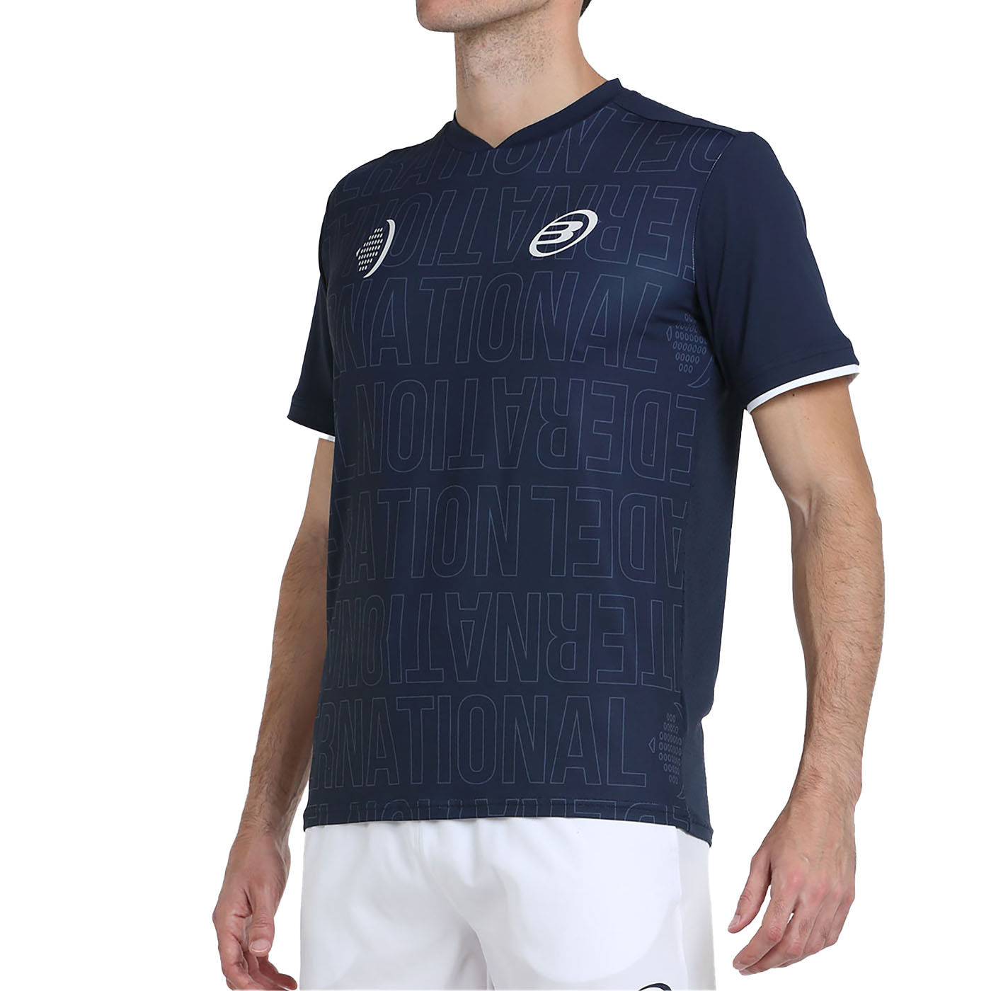 Camiseta de nuestra línea especial de la Federación Internacional de Pádel. Presenta un diseño elegante por sublimación en la zona delantera, la espalda decorada con efecto texturizado a través de presión y detalles con prints de la colección. Está fabricada con tejido técnico y ligero de poliéster y Spandex elástico, dotando a la prenda de confort y funcionalidad. Además, incorpora la tecnología Drynamic, que utiliza micro-filamentos para reducir la humedad y favorecer la transpiración.