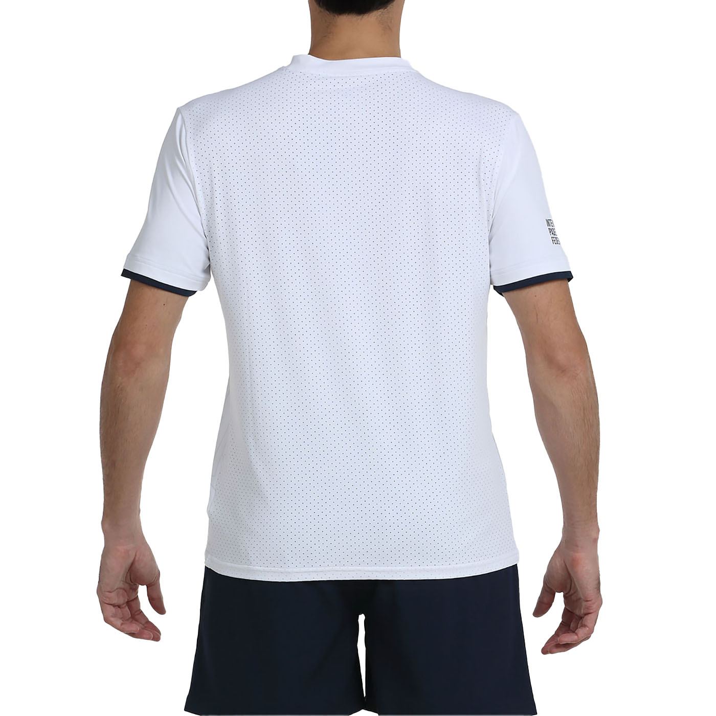Camiseta de nuestra línea especial de la Federación Internacional de Pádel. Presenta un diseño elegante por sublimación en la zona delantera y la espalda decorada con efecto texturizado a través de presión. También integra doble tejido a contraste en la boca de la manga y detalles con prints de la colección. Está fabricada con tejido técnico y ligero de poliéster elástico, dotando a la prenda de confort y funcionalidad. Además, incorpora la tecnología Drynamic, que utiliza micro-filamentos para reducir la humedad y favorecer la transpiración.