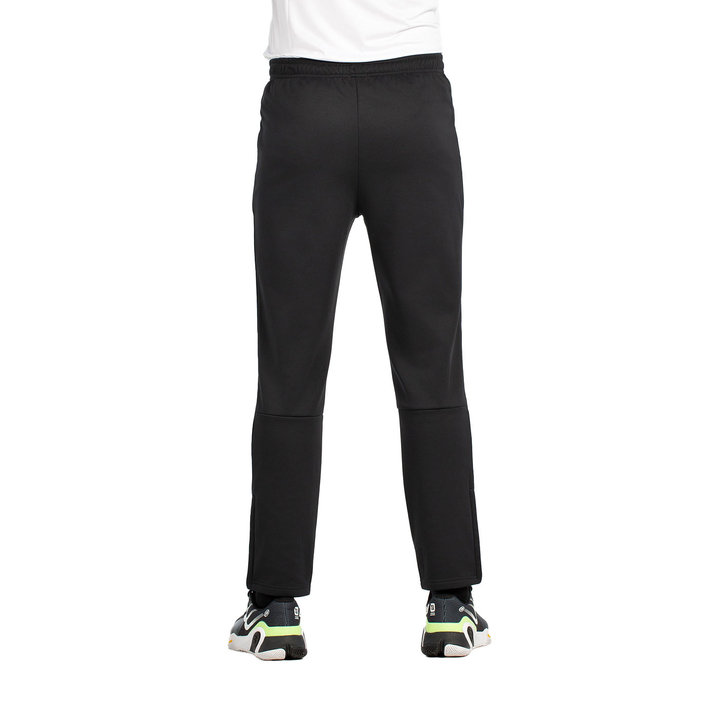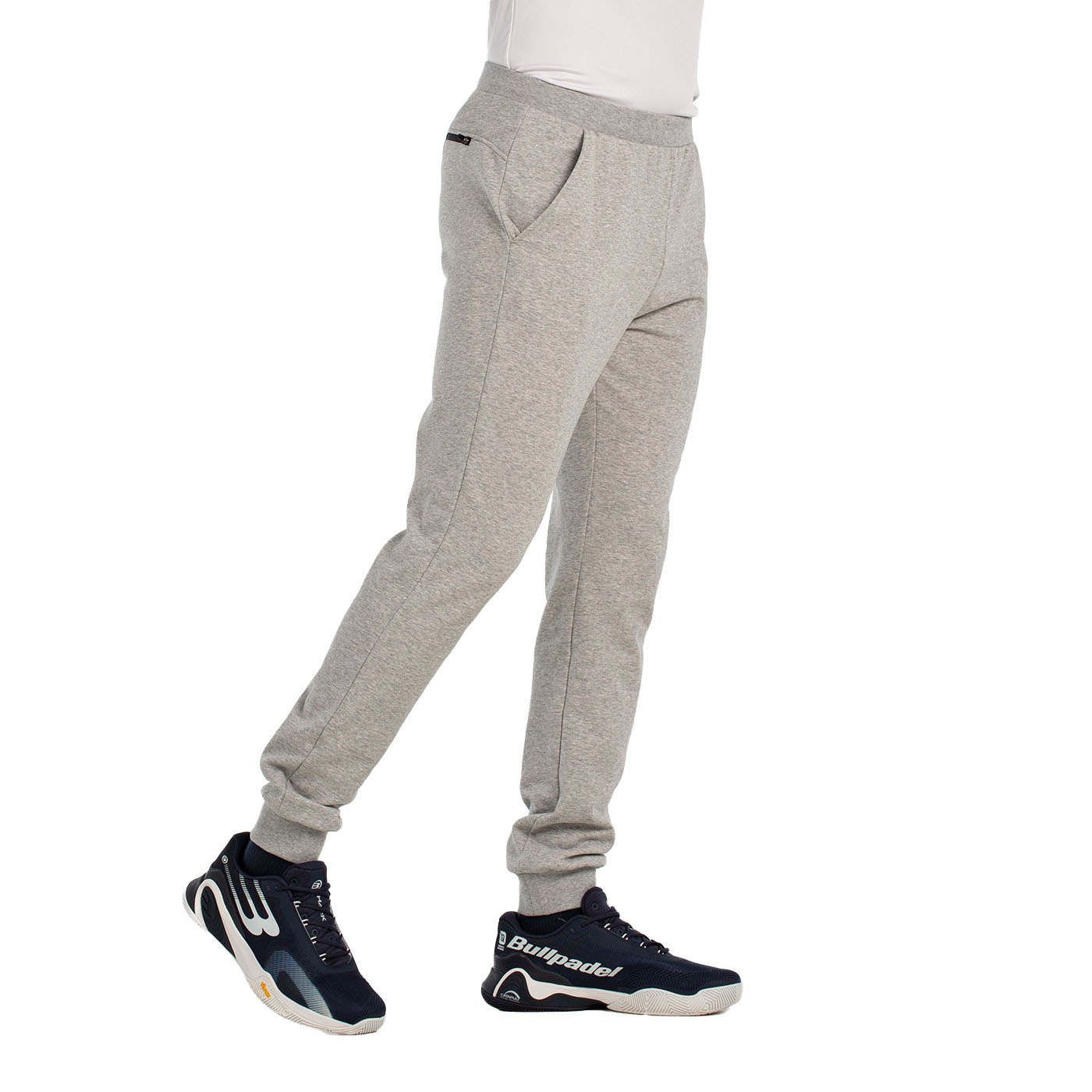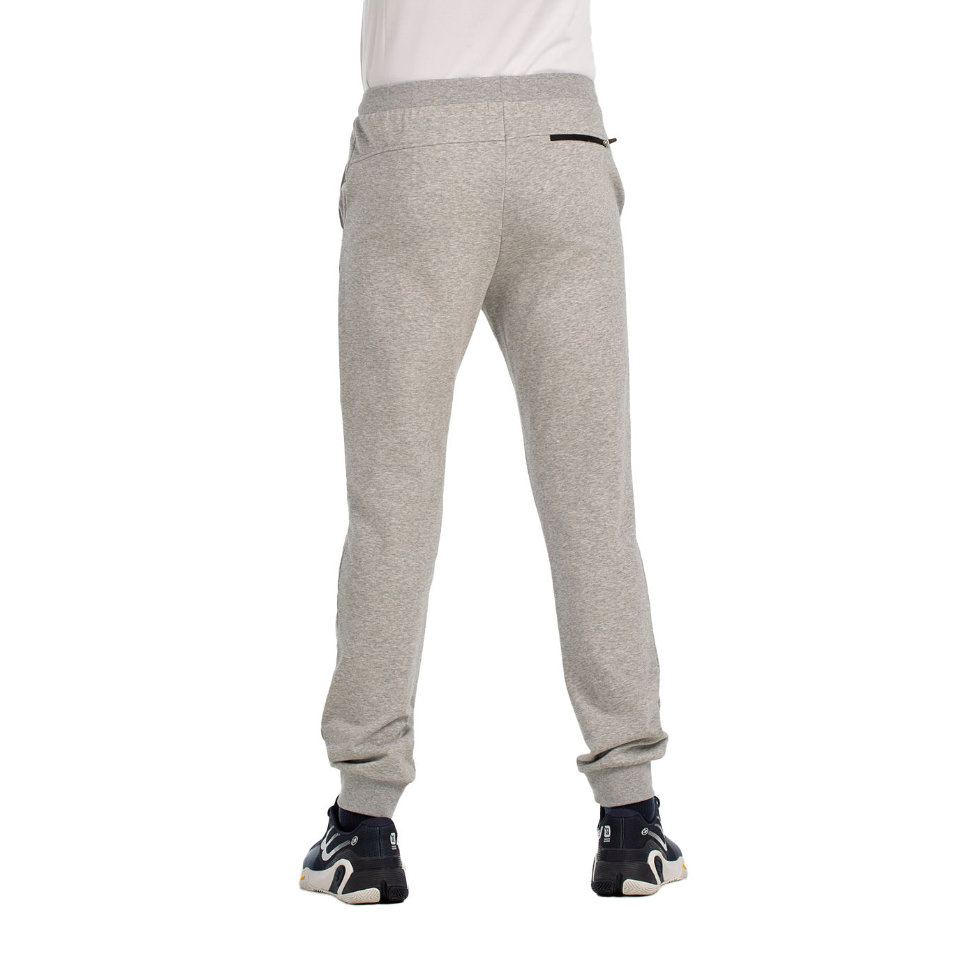 Pantalón largo con puño en felpa de poliéster, algodón y elastán, con bolsillos laterales, tercer bolsillo con cremallera en la espalda y cordón personalizado para ajustar.