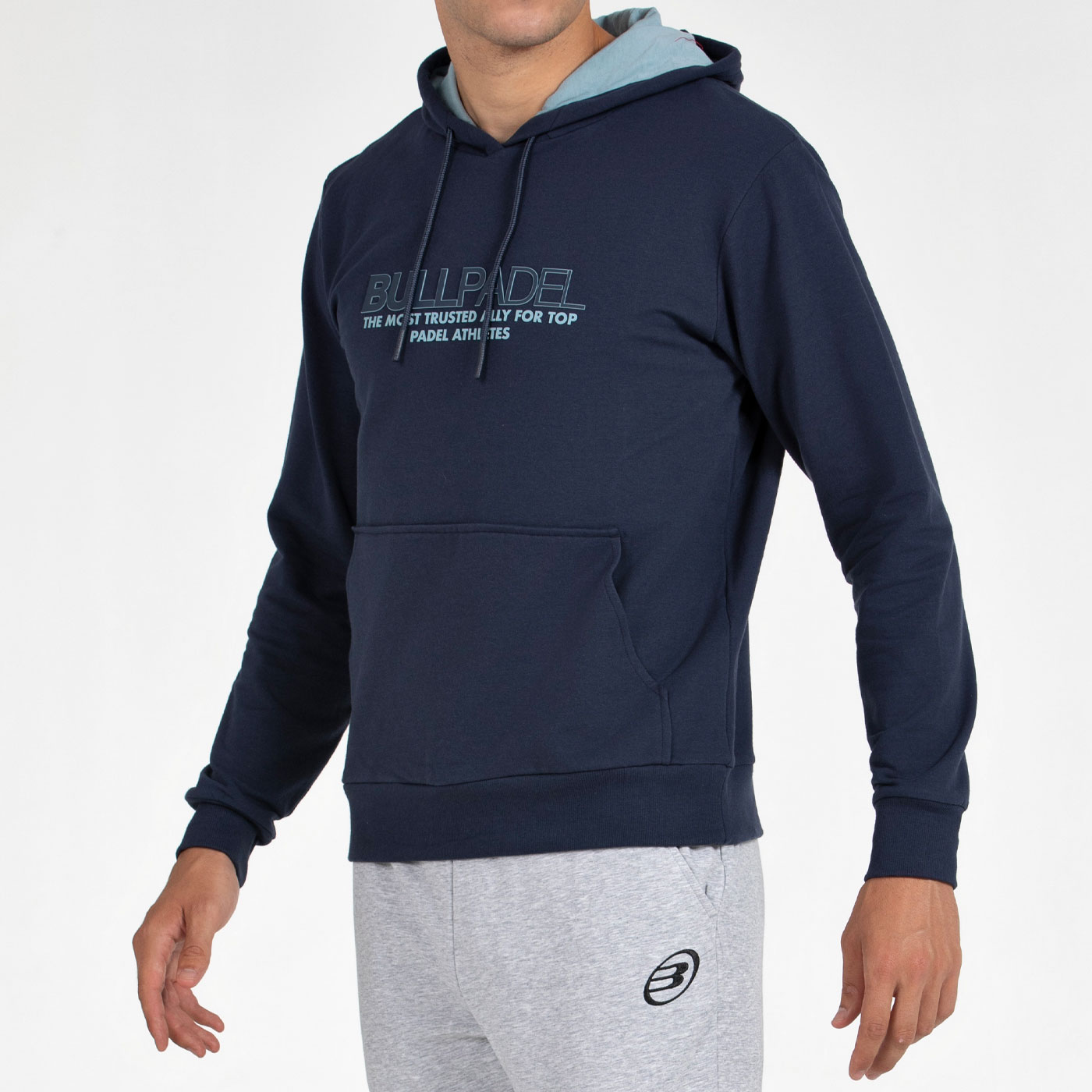 Sudadera de capucha y bolsillo de canguro en felpa de poliéster. Tiene una decoración en el delantero grabado con calor, cordón con tip personalizado y una etiqueta de goma para sujetar el cordón.