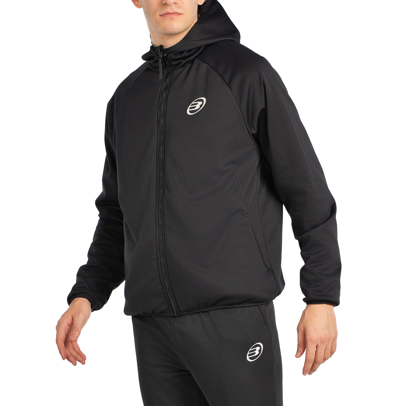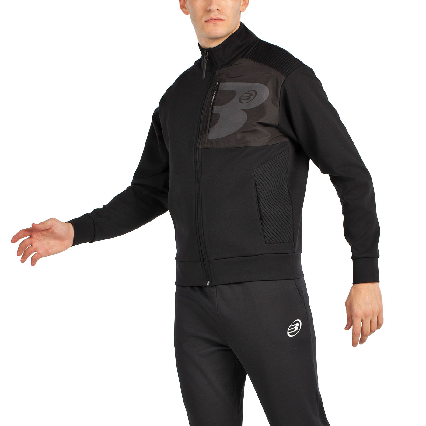 Sudadera con cremallera completa en interlock de poliéster con piezas en interlock de efecto ottoman de poliéster, pieza de tejido bielastico en el pecho con bolsillo de cremallera y decoración en print.