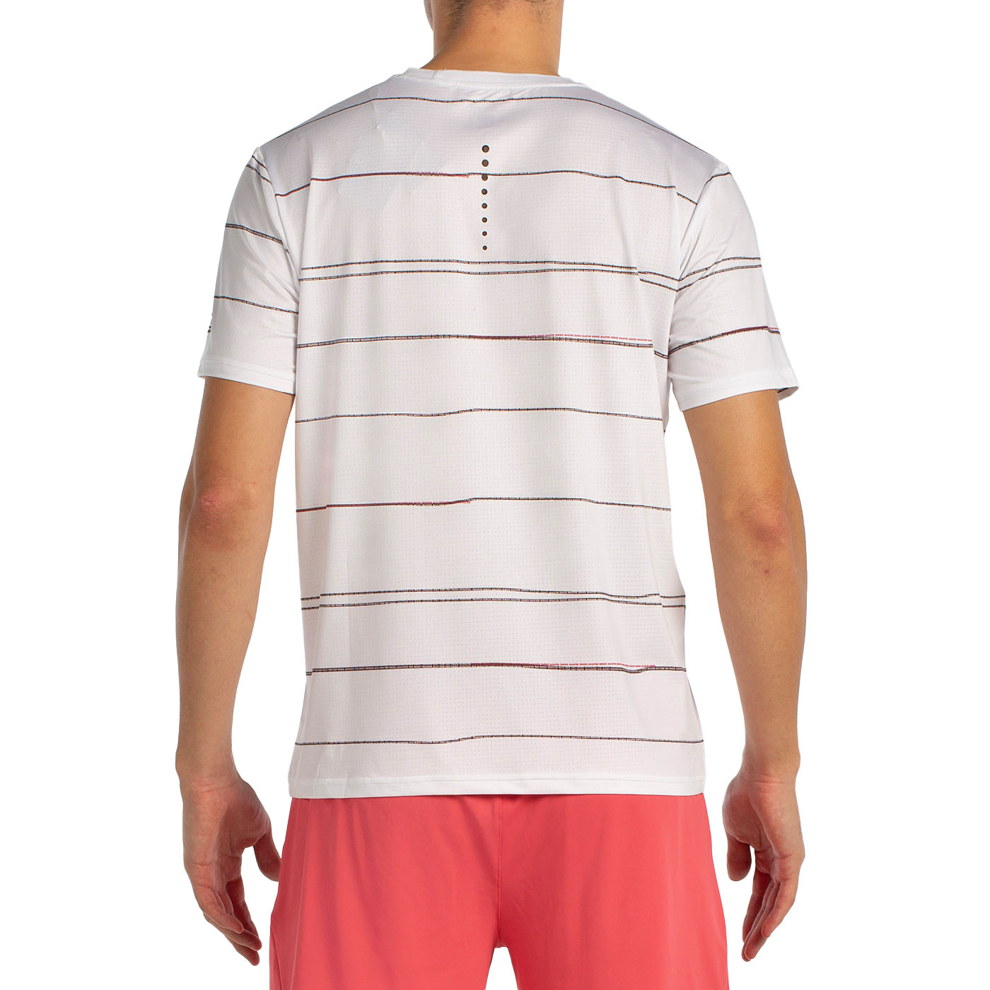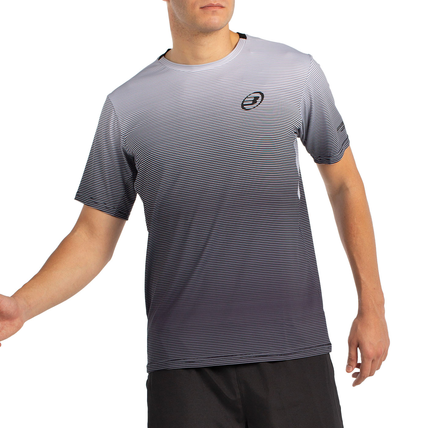 Camiseta de manga corta en tejido single de poliéster con elastán y cuello de rib en la espalda de nuestra línea Master con acabado drynamic que favorece el secado rápido y la confortabilidad. Prenda con estampado rayado sublimado, perforaciones laser en la espalda y piezas multiperforadas bajo las mangas que favorecen la transpirabilidad, logos engomados en delantero y mangas.
