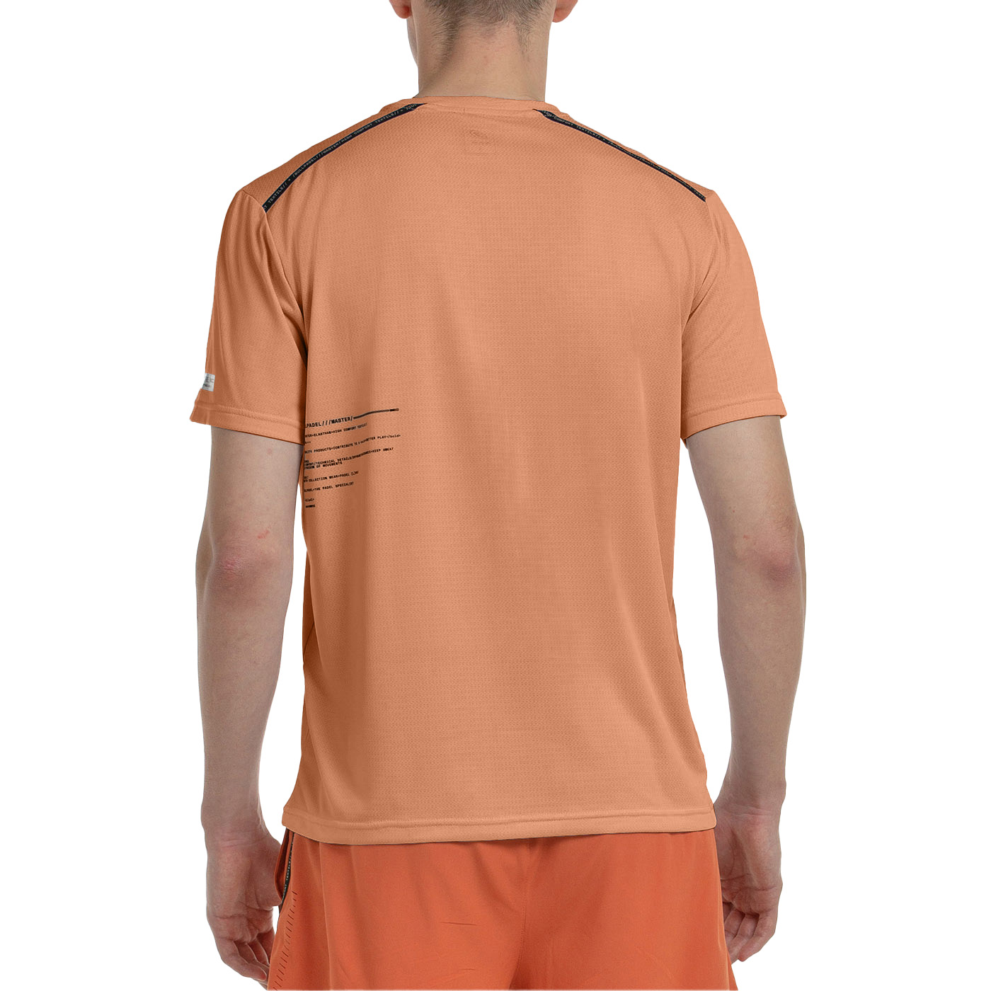 Camiseta técnica de Jacquard ligero con aspecto vigoré de diseño atractivo a través de piezas a contraste convinando el tejido principal con inserciones de fake mesh y print en la manga. Fabricada con tejido ultraligero en poliéster, dota a la prenda de comodidad y funcionalidad. Se le aplica el acabado Quickerdry, tecnología que utiliza microfilamentos para reducir la humedad y ayudar a la transpiración